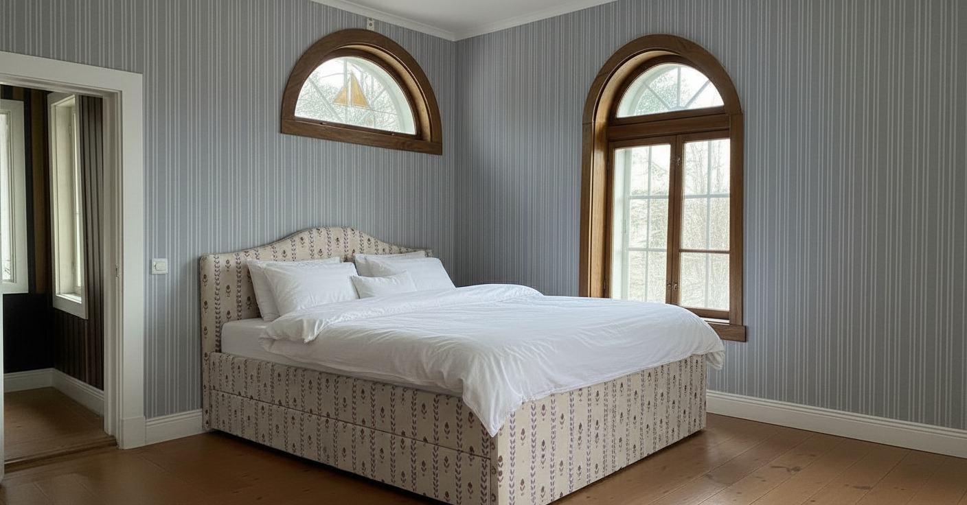 rotate the bed so that the headboards is towards the other wall with the bigger window