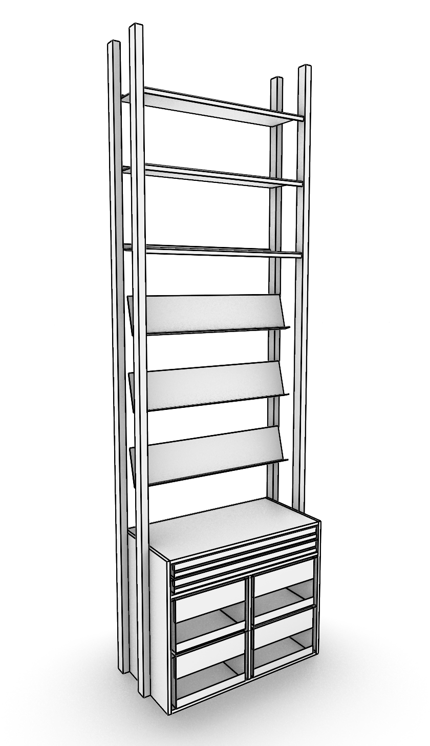 uprights solid ash wood horizontal drawers out of galvanised metal sheet and solid ash fronts