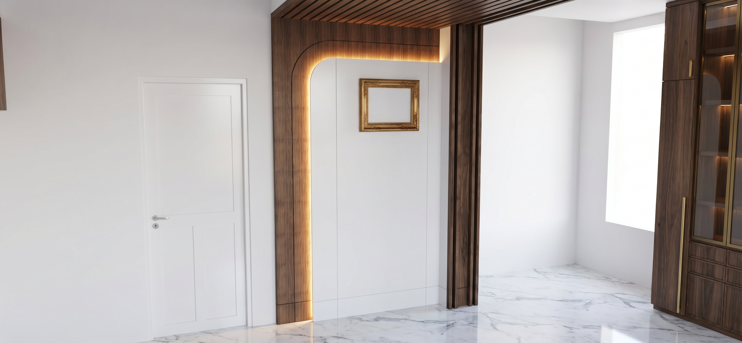 keep the stools but change the color and make it beige velvet add a balcony and add a view of thessaloniki outside the windows the kitchen counter top is also brown marble make the glass at the wine cabinet total transparent