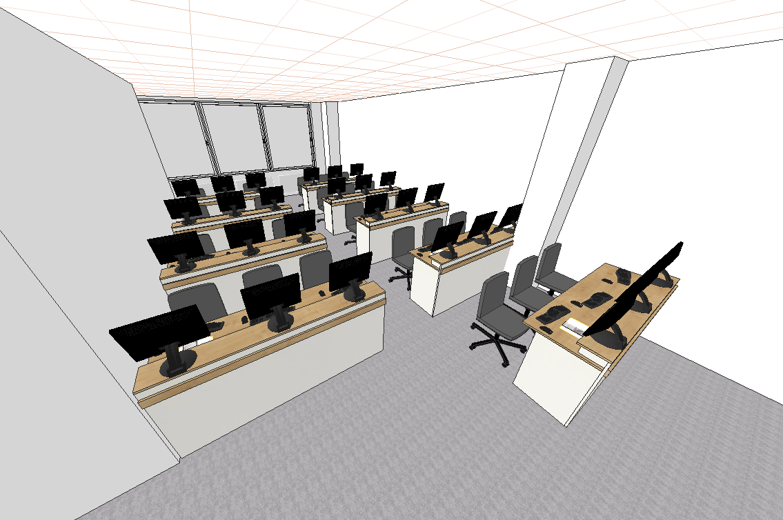 mood relax je to studentska pocitacova ucebna pridaj svetlo ktore prenika odzadu cez okno pridaj aj stropne svietenie pridaj par studentov sediacich na stolickach