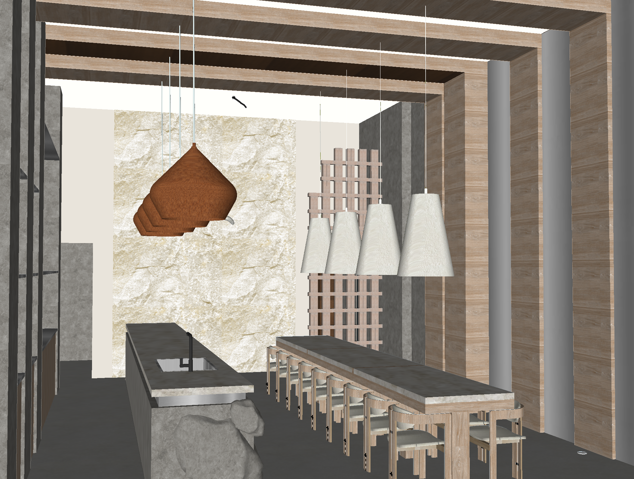 add mirror between wood columns