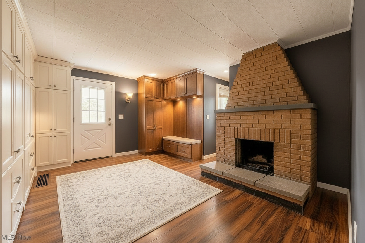 paint the wood colored cabinetry to match the color of the other white cabinets