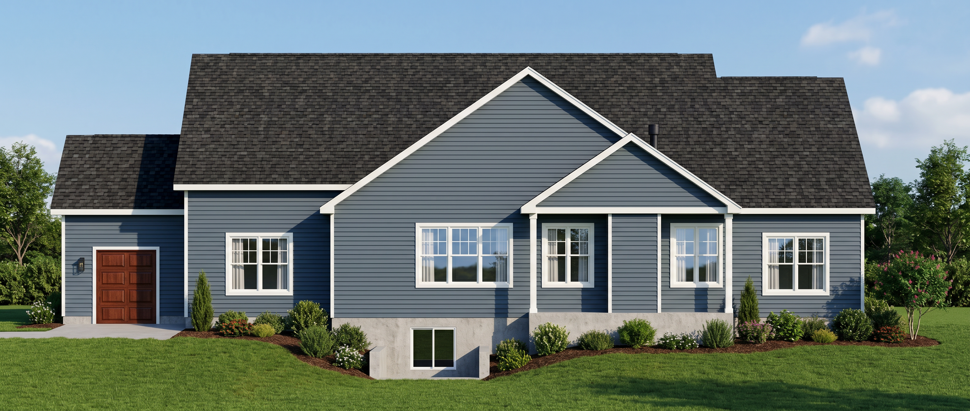 make rustic cabin like cream rock and light blonde wood add landscape gray roof only cream brown rock and light wood siding no chimney and more rock