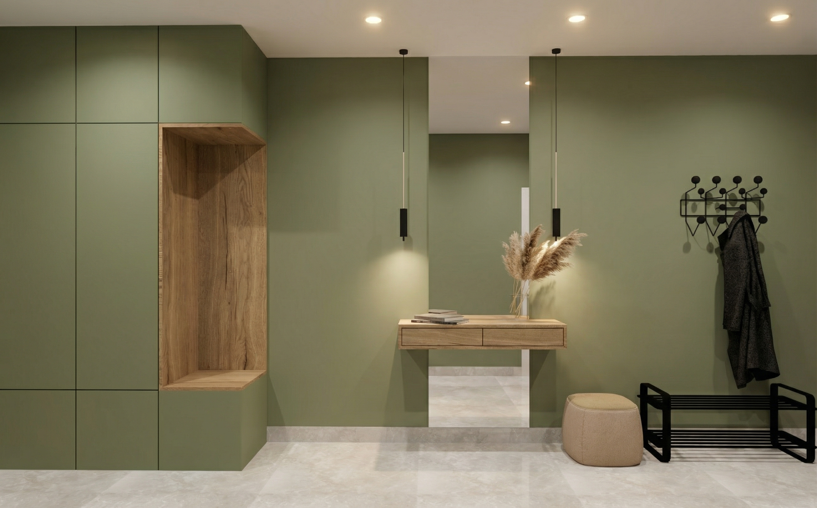 round mirror has a led around so make it shine around drawer and cupboard is light beige not wooden no light on the tiles
