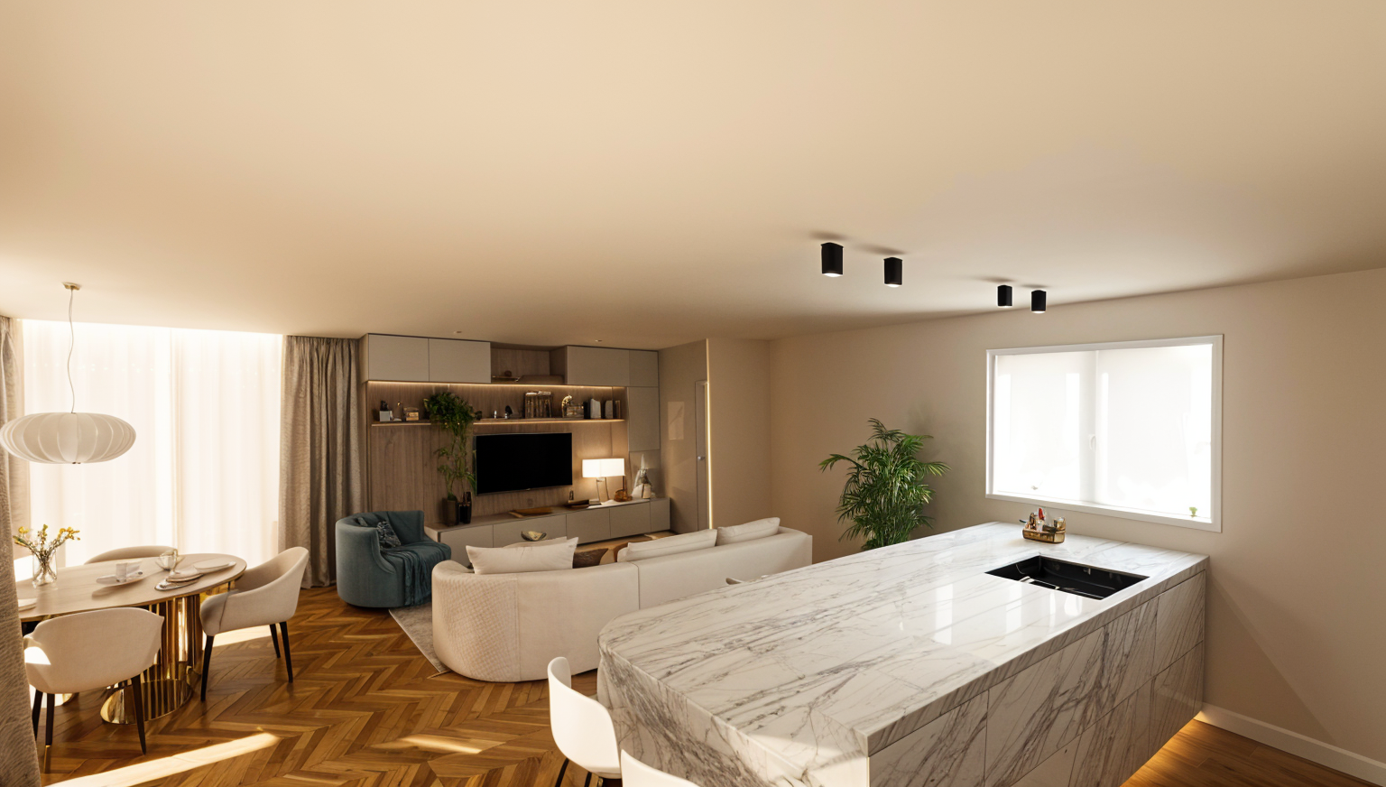 create a photorealistic front facing rendering of a two story elevated modern coastal home exactly matching the provided architectural elevation the rendering must be viewed from the front of the home straight on or at a slight angle not rear or aerial architecture structure the entire underside of the home is completely open supported only by exposed concrete pilings no enclosed walls panels or storage the home s depth should be limited to 3 rows of pilings deep ensuring a realistic elevated stilt house footprint upper level exterior light blue horizontal siding with two double hung windows lower wall section above flood elevation vertical natural weathered wood slats all window and door frames including sliders and main entry must be black roof must be a gable roof only no hip roof standing seam metal in galvanized or matte gray with matching pitch on the main roof and porch black horizontal railings on balcony and stairs hardscape landscaping a solid paver driveway light gray or ivory extending under the home and into the backyard landscaping should be minimal and neatly maintained using dwarf palms low grasses and native shrubs pool placement behind the home the swimming pool must be located directly in the backyard behind the home clearly visible in the background of the front facing view pool must meet all requirements perfect rectangle parallel to the back of the home exactly as wide as the home matching its full width but not extending beyond it surround the pool with the same paver material as the driveway setting location dry inland lot on fort myers beach no beach or water visible include other nearby elevated coastal style homes in the periphery to reflect a neighborhood streetscape lighting bright daytime florida sunlight with crisp shadows and clear blue sky overall style modern florida stilt house with scandinavian influenced minimalism concrete piling base 3 deep clean landscaping and premium outdoor living with a rear pool visible from the front view