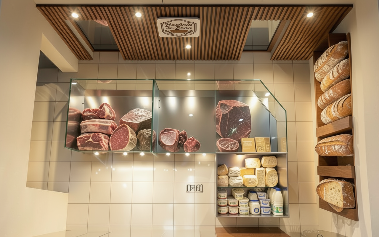 render this kitchen with light oak cabinets black bar pull hardware and black plumbing fixtures stainless steel appliances quartz countertop and backsplash with very light grey vein the floors should be light oak and walls to be sheetrock painted white the base molding to be glossy white