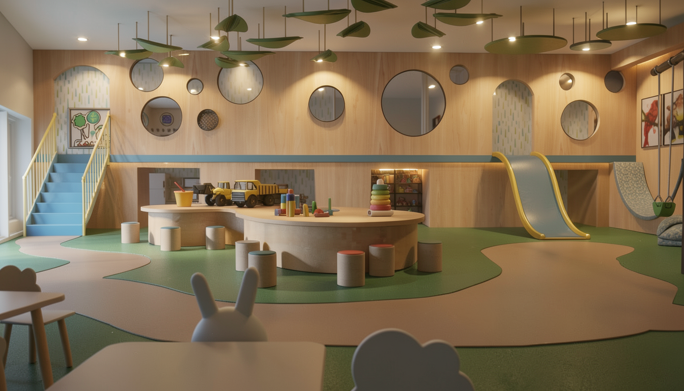 make floors natural white oak matching the existing cabinets add sink on counter and floating shelves above