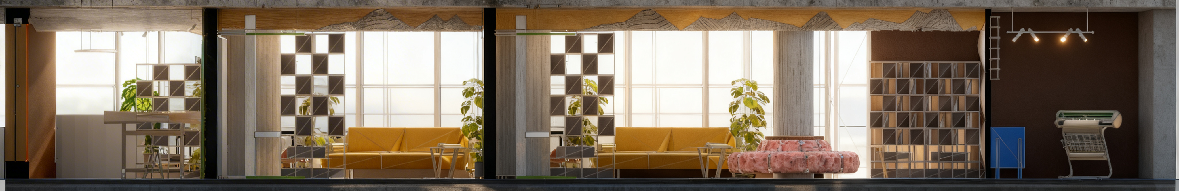 spatiul gol din mijloc stanga trebuie sa ramana gol acolo este casa scarii nu avem ferestre la canapeaua centrala circulara pe stalp materialitatea este de piele camel la fel ca si canapeaua din stanga stalpului