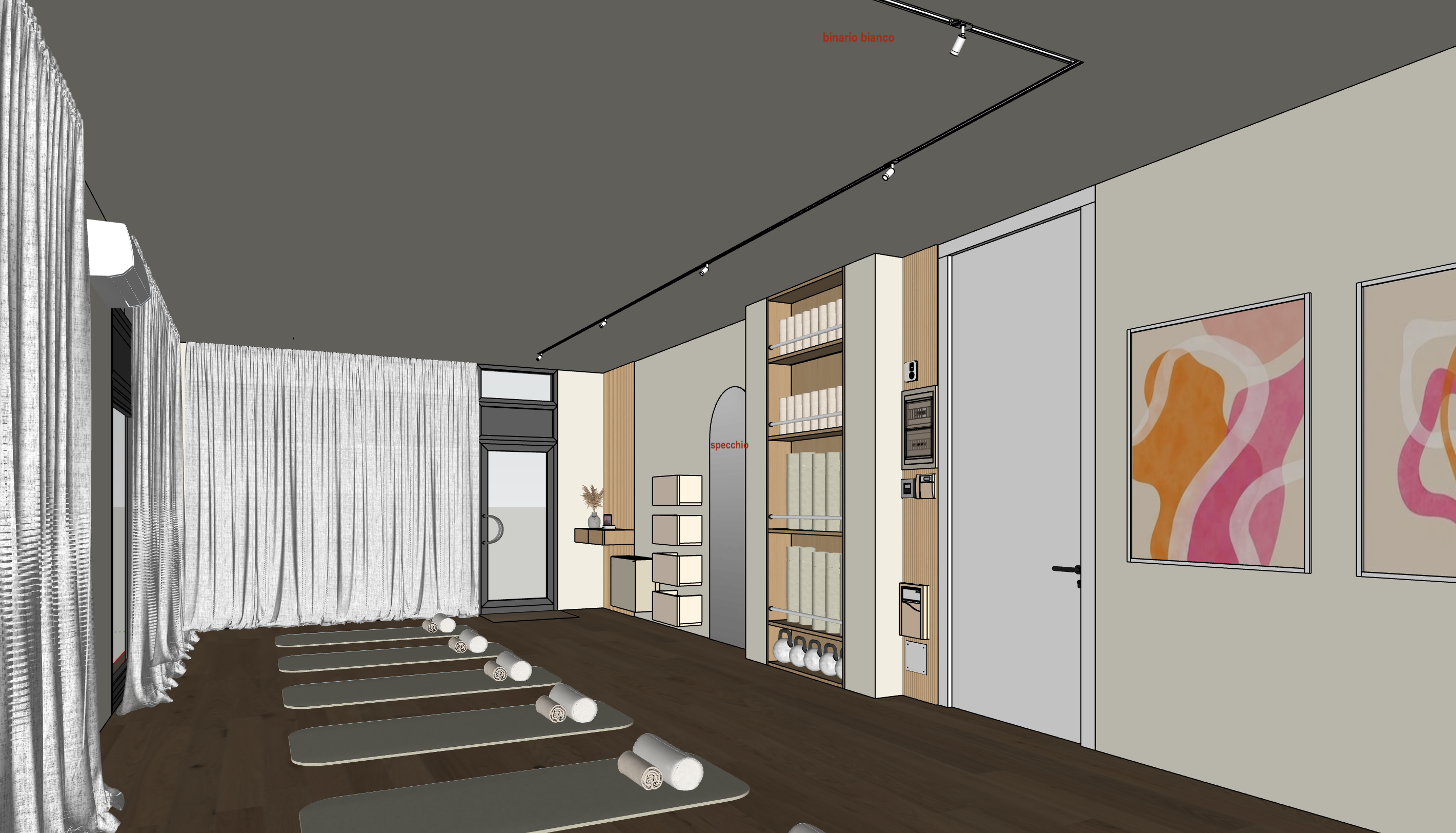 render realistico pareti colore crema binario a soffitto bianco ral 9010