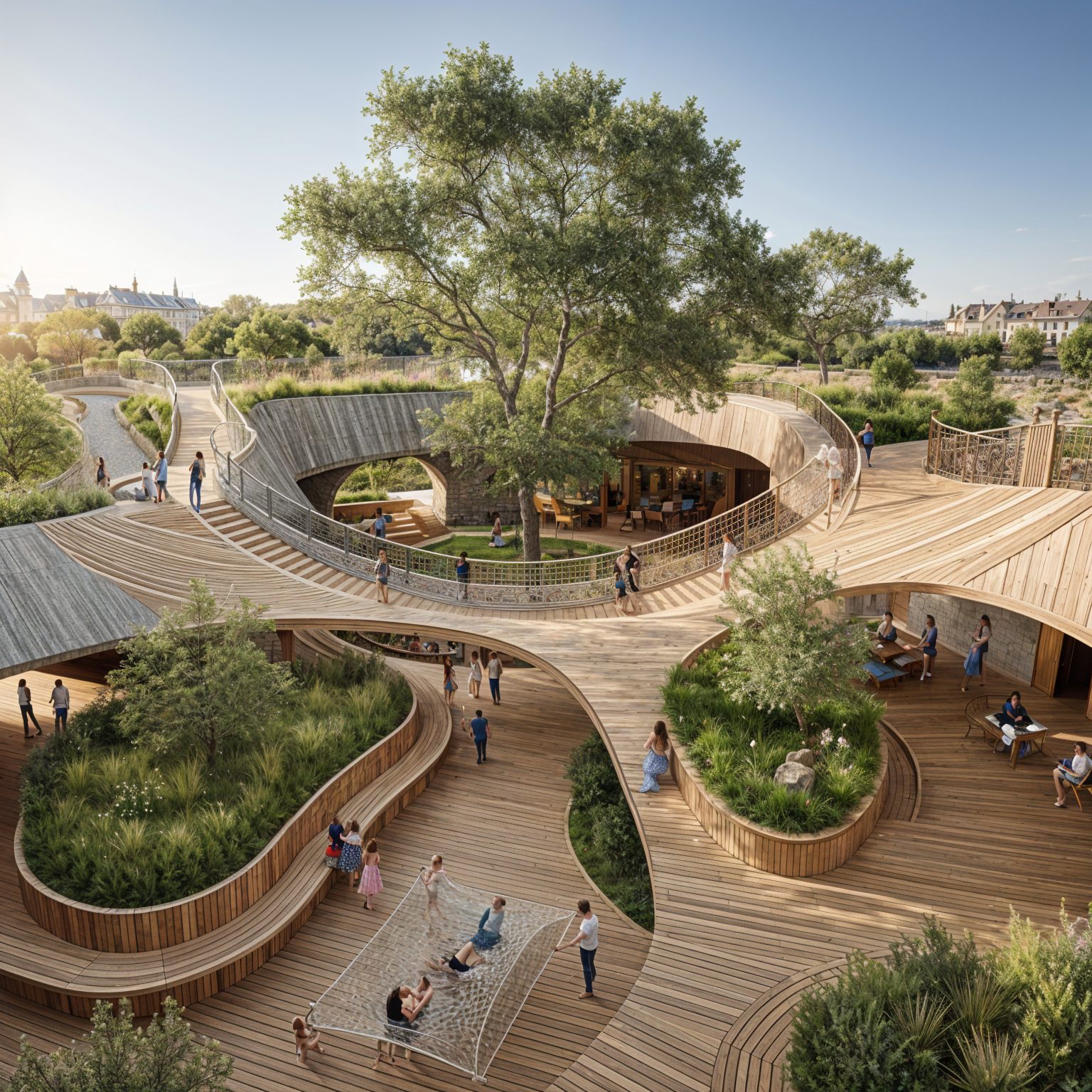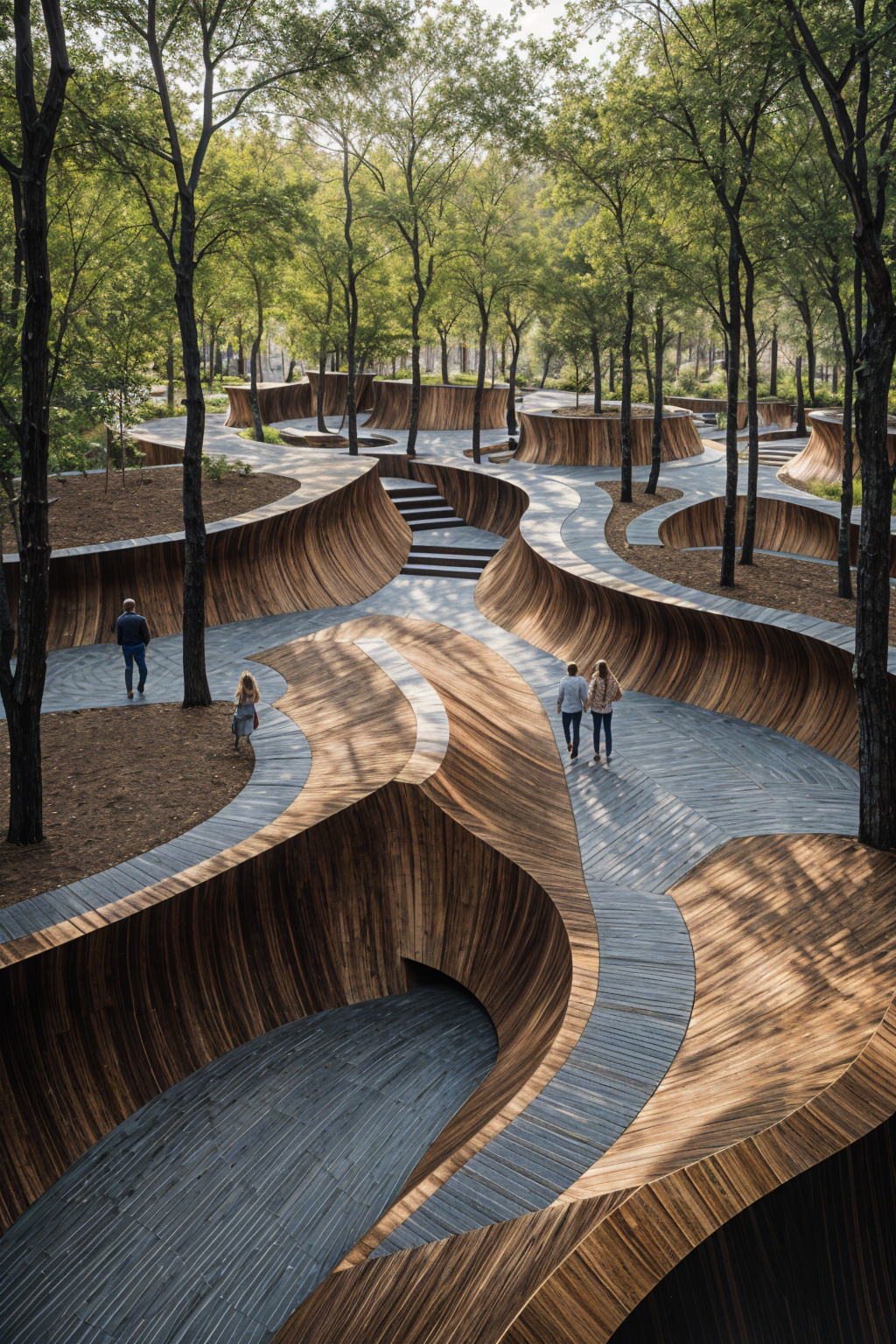 sarineen exterior shot make it designed with more curvy line modern wood nature concept with open spaces more elegant add more greenery architecture