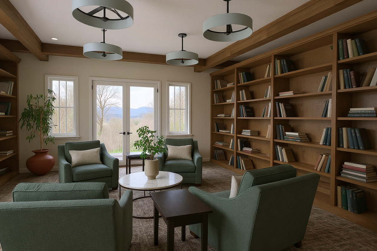 add a lot of books to shelves turn lights on brighten room