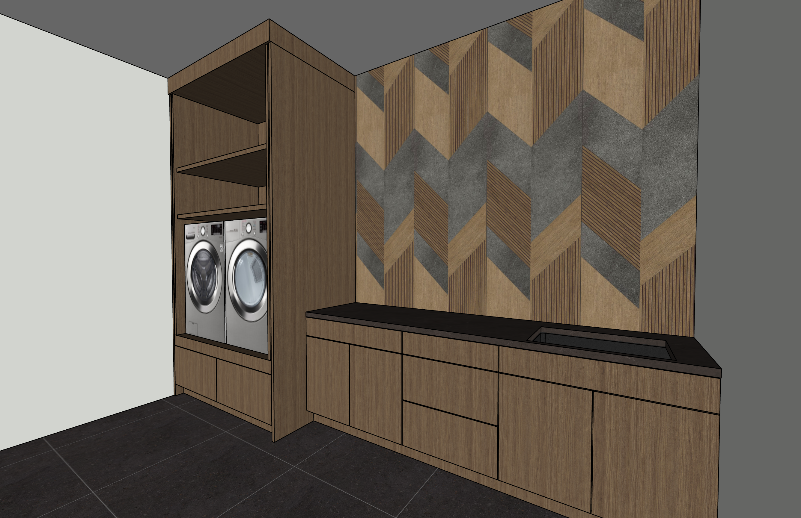 photorealistic enhancement of the provided architectural render preserve the exact architecture layout materials furniture placement and fixtures from the original image with no redesign or modifications the purpose is only to improve realism and lighting quality render as high end interior photography using a full frame camera with a 24 35mm architectural lens balanced exposure realistic dynamic range subtle depth of field and natural color grading the image should look like a professionally photographed luxury interior rather than a computer render soft natural daylight diffused window light global illumination balanced exposuredo not change architecture do not change materials no redesign no new objects no additional lights no glowing fixtures no light from shower heads or faucets no dramatic shadows no surreal lighting no warped geometry no stylization the space should be lit by 2 can lights in the ceiling there are no windows in this space therefore there should be no light shining from any direction there should be a matte black kitchen faucet over the sink the faucet should be a little taller and have one lever handle the faucet should be centered on the sink the cabinet color should be a medium toned wood