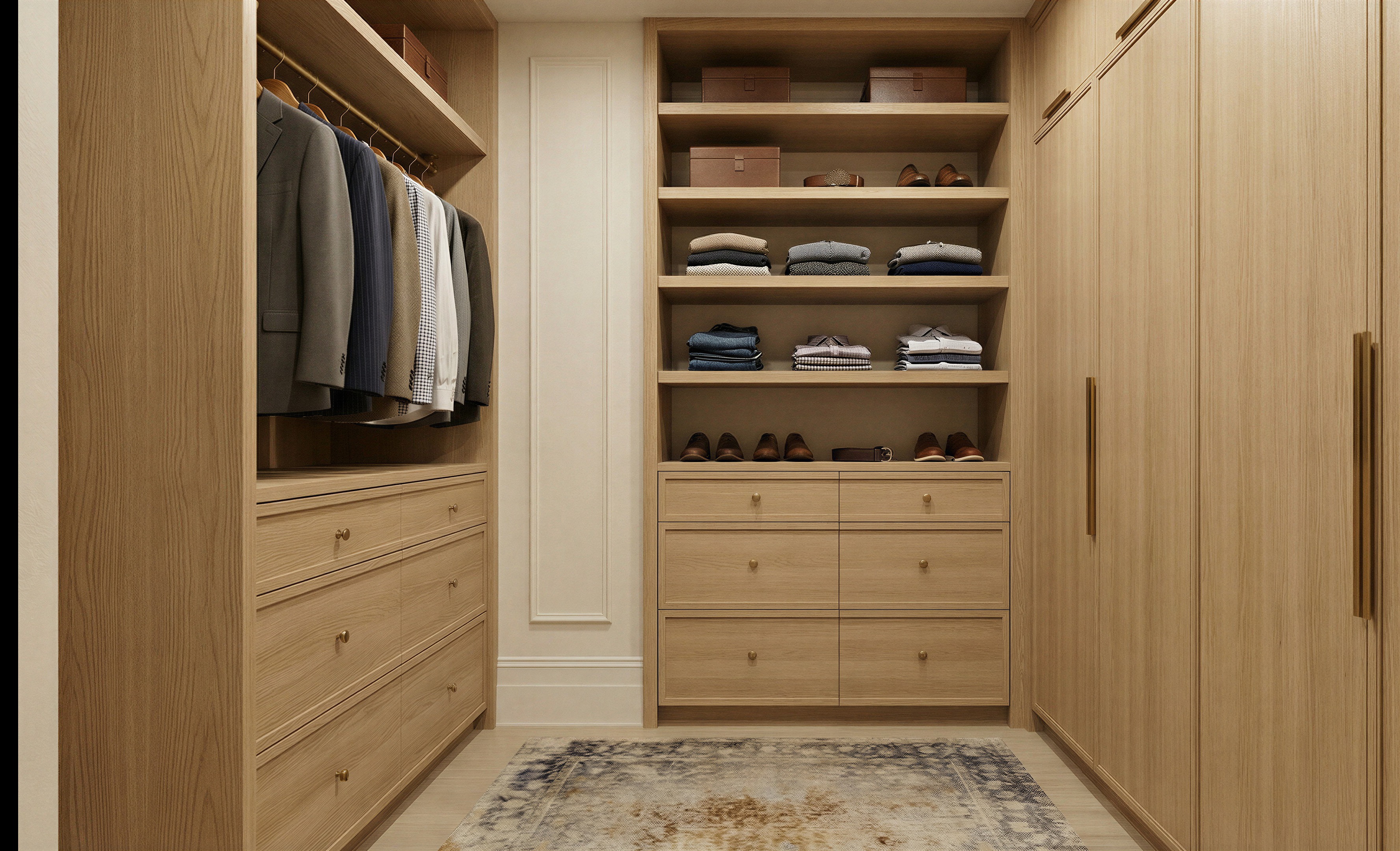 keep everything the same dont change anything just add full doors to cover the shelves in the back make the white wall portioon with the applied molding and baseboard in the same wood finish