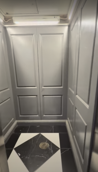 add art deco vintage inspired small framed artworks to the walls in this elevator cab