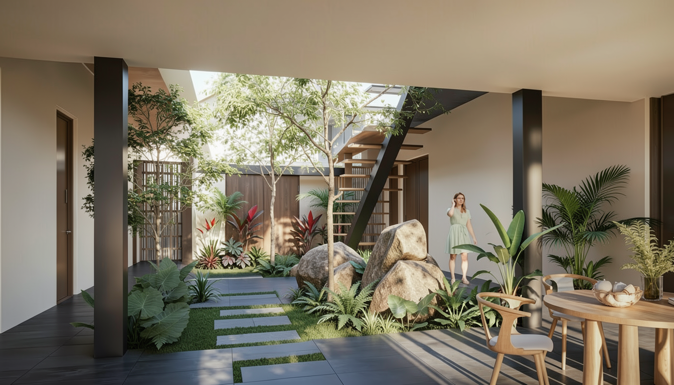 can you change this exterior elevation to reflect a european cottage aesthetic and include an arched front door and arched window