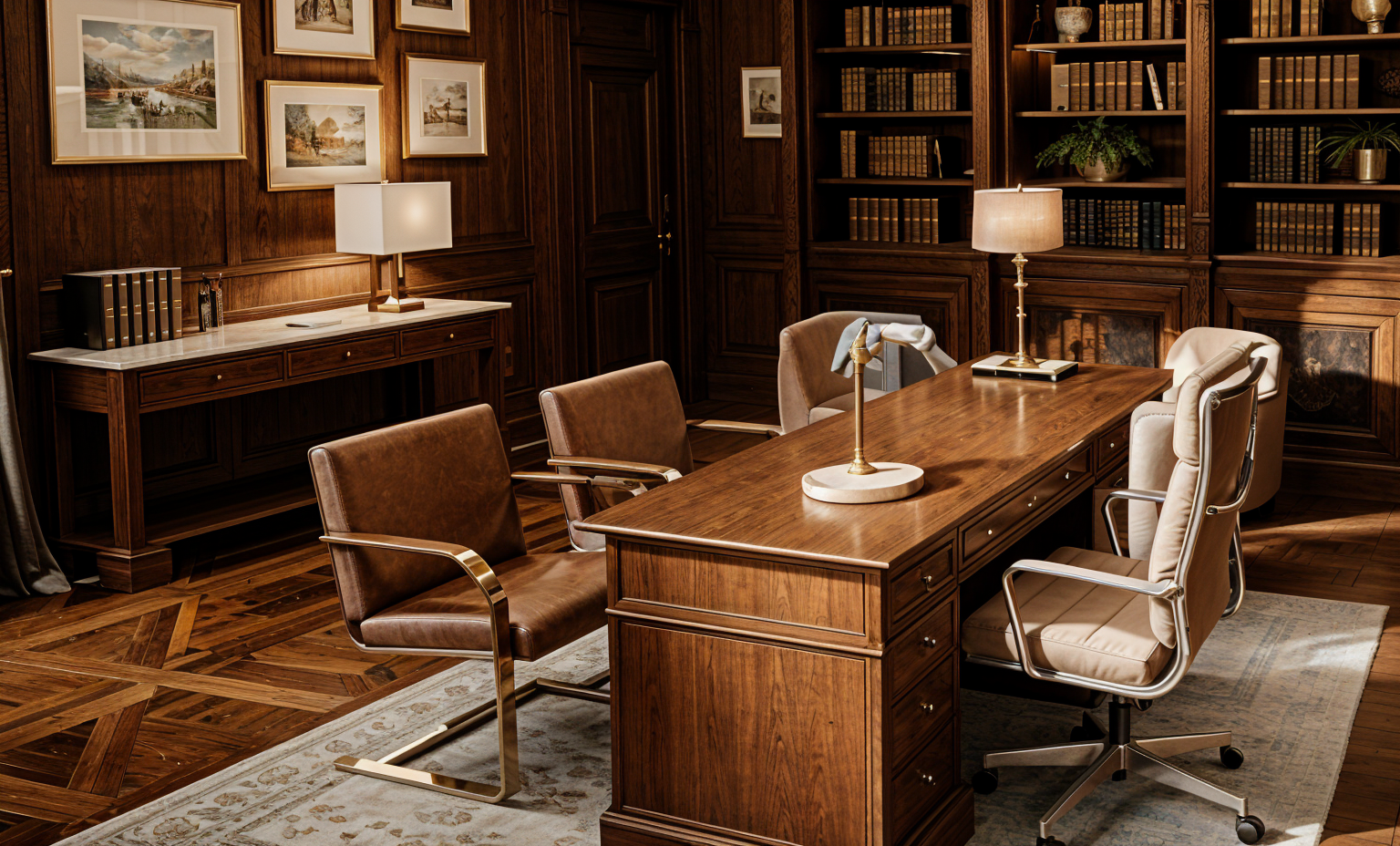 the desk has smooth faces without moldings and is red mahogany color
