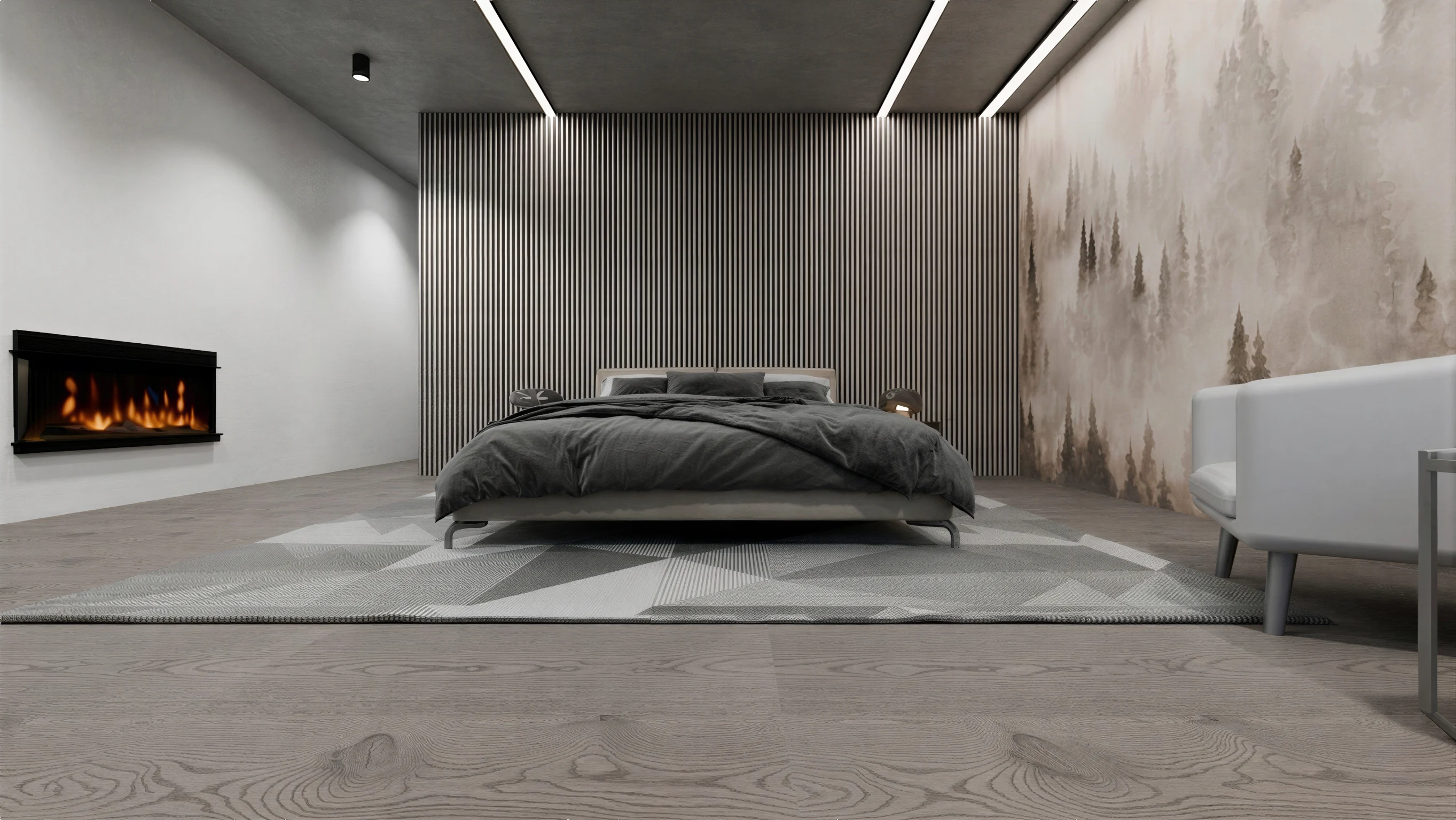 high end walk in closet luxury dressing room smoked glass wardrobes with black metal frames warm smoked oak wooden floor exposed concrete ceiling with refined texturenatural daylight coming through windows soft diffused daylight bright but soft lighting realistic interior photography style balanced exposure no harsh shadowselegant minimalistic design warm and neutral tones premium materials subtle reflections in glass clean and calm atmosphererealistic materials natural imperfections soft shadows no flat lighting no overexposed highlightsdaylight interior bright natural light soft daylight illumination no artificial warm lighting dominancesoft sunlight entering space gentle highlights architectural photography lighting