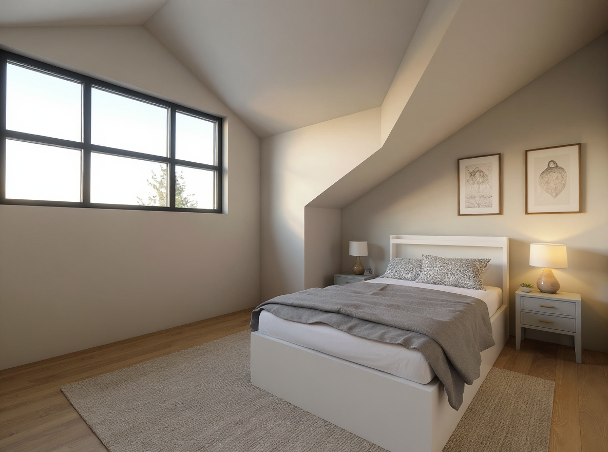 make the bed look bigger change headboard to a modern designed headboard add dresser below window