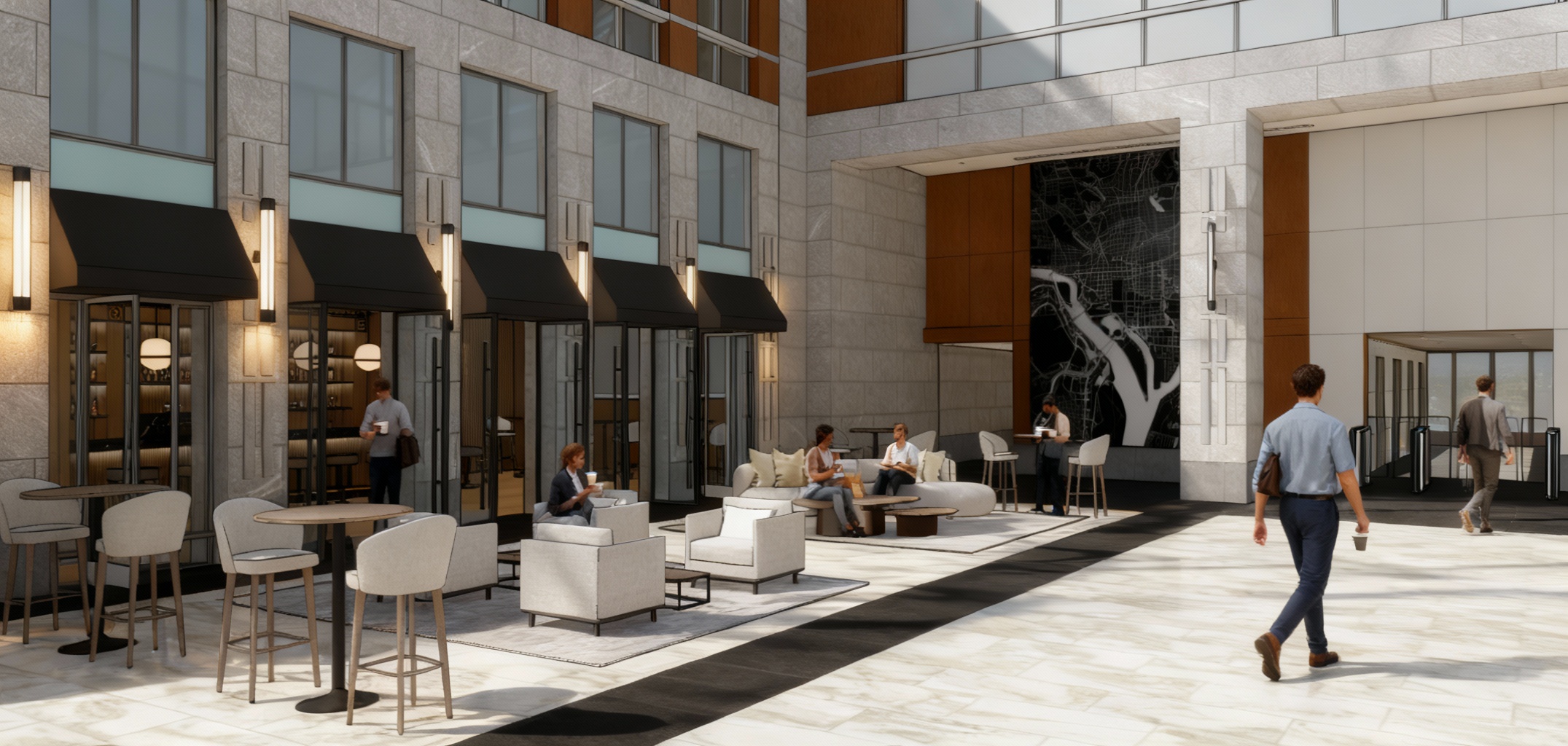 ultra photorealistic cinematic rendering of a contemporary two story home with light cream stucco walls black steel windows midday natural sunlight from the front with soft directional shadows and realistic reflections on glass set in an elegant luxury suburban neighborhood with manicured landscaping lush green lawn trimmed hedges and a straight concrete walkway leading to the front door high end architectural photography aesthetic shallow depth of field subtle lens bloom physically based pbr materials realistic stucco texture detailed roof shingles 8k ultra quality shot on leica full frame camera with 35mm lens editorial lighting balance color graded for warmth and depth architecture