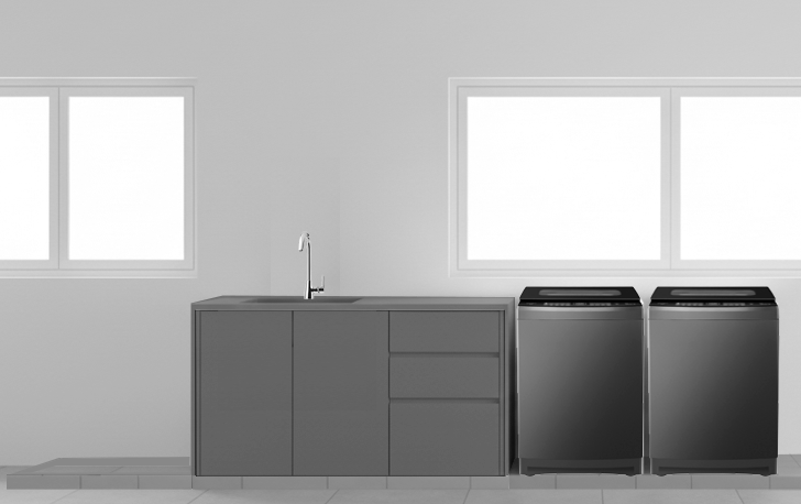 more realistic and enhance washing machine to be top loading dorr panel to be smooth grey finish