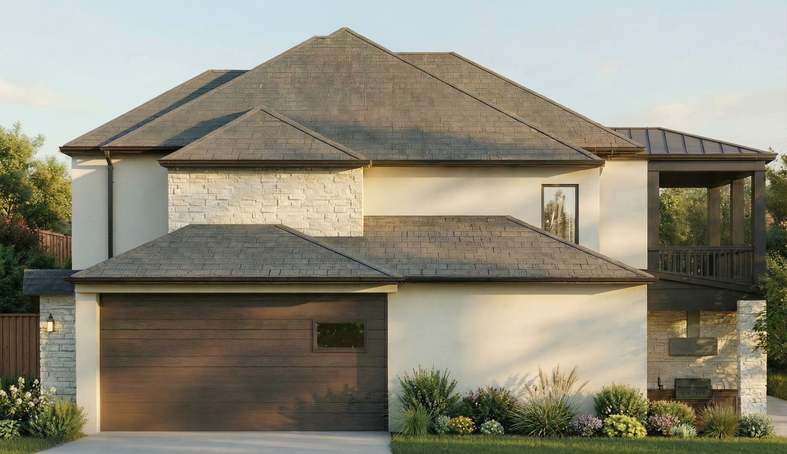 do not change any materials do not move any windows doors or rooflines do not change any colors materials or finishes except render this to look like an outdoor photorealistic scene
