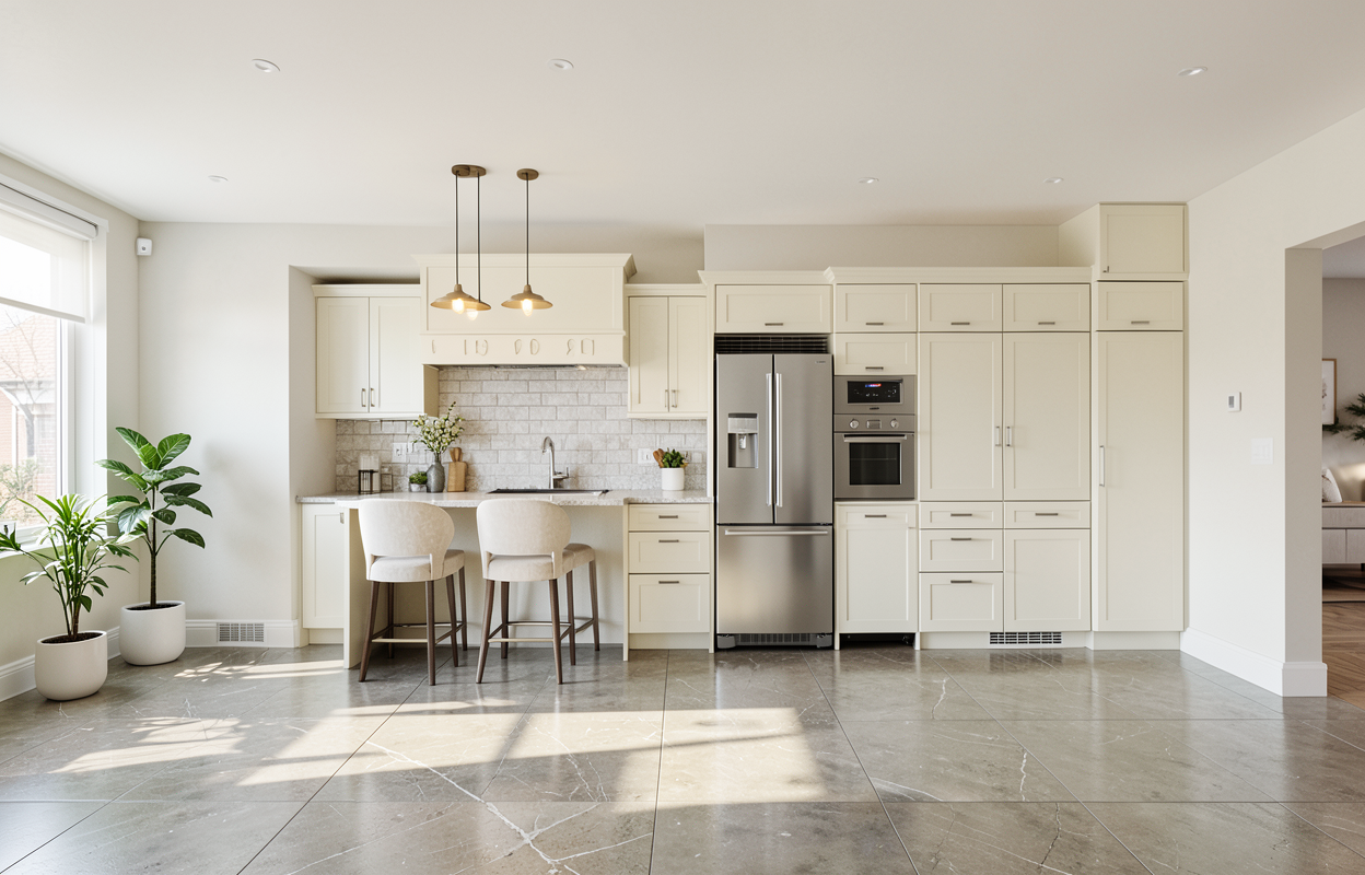 all marble shown should be in a honed finish please do not change any materials or any architecture shown in the image