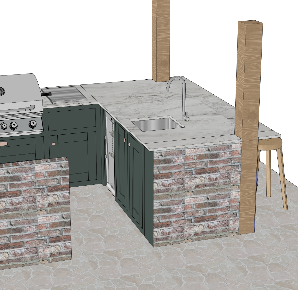 remove the wood effect from the cabinets and instead have a powder coated texture can the patio be extended into a larger patio with an outdoor table and chairs