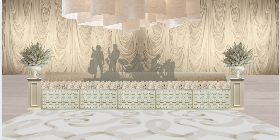 evening lighting with a band playing have the drapery pendant light glowing