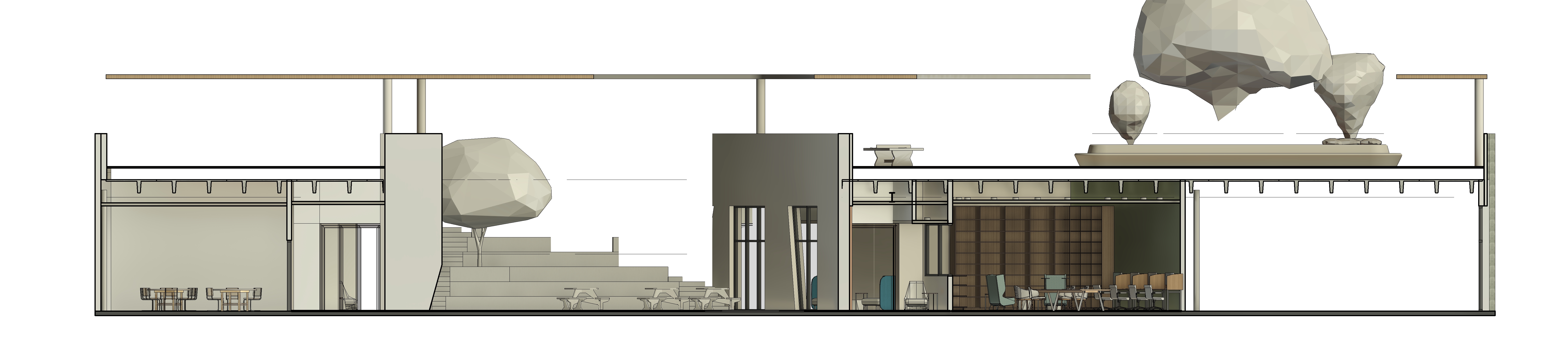 grainy watercolor rendering of building section