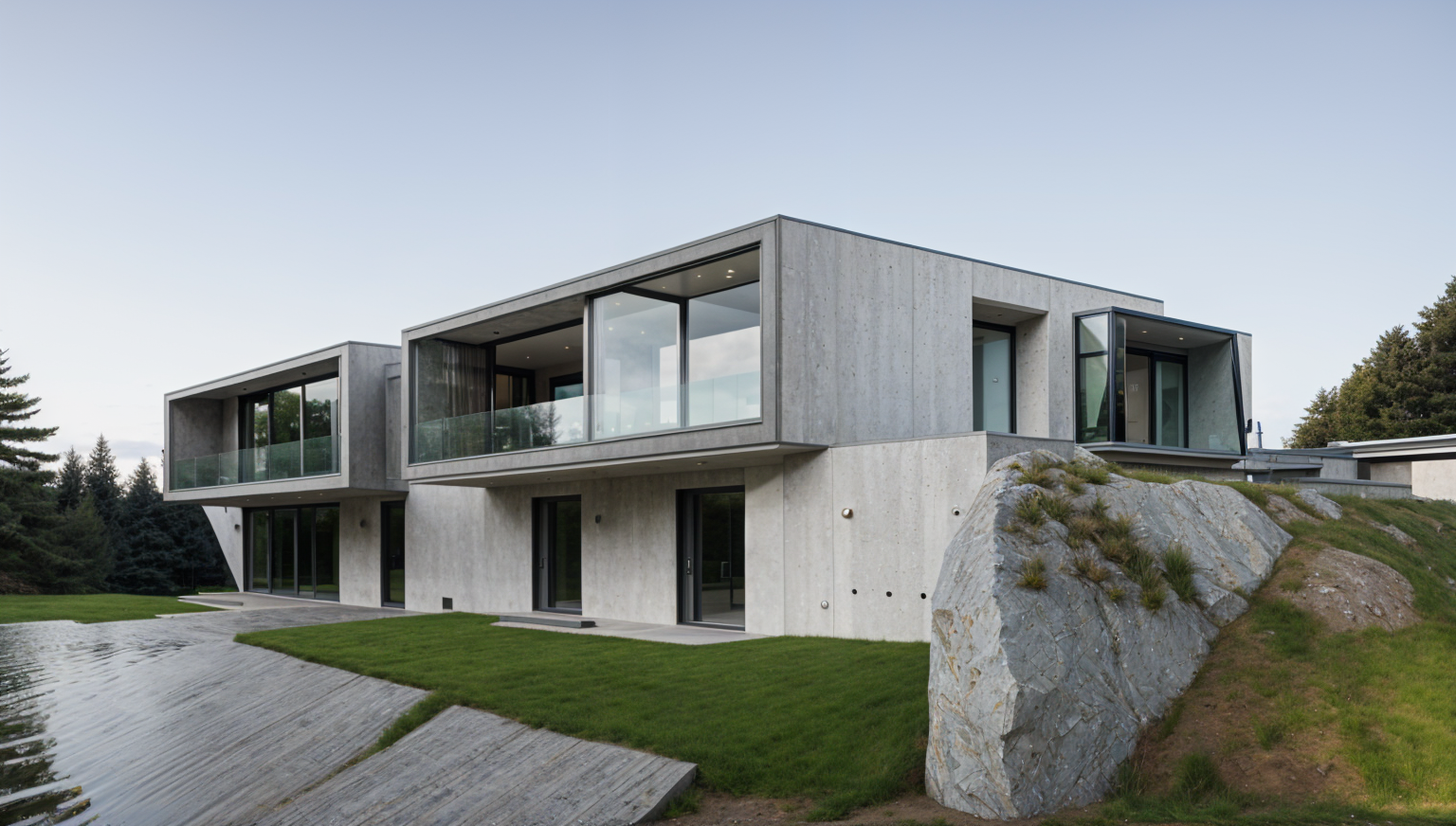 modern farmhouse with black steel roof dark gray vertical siding medium brown horizontal siding medium brown exposed trusses gray and white stone and sod landscaping architecture