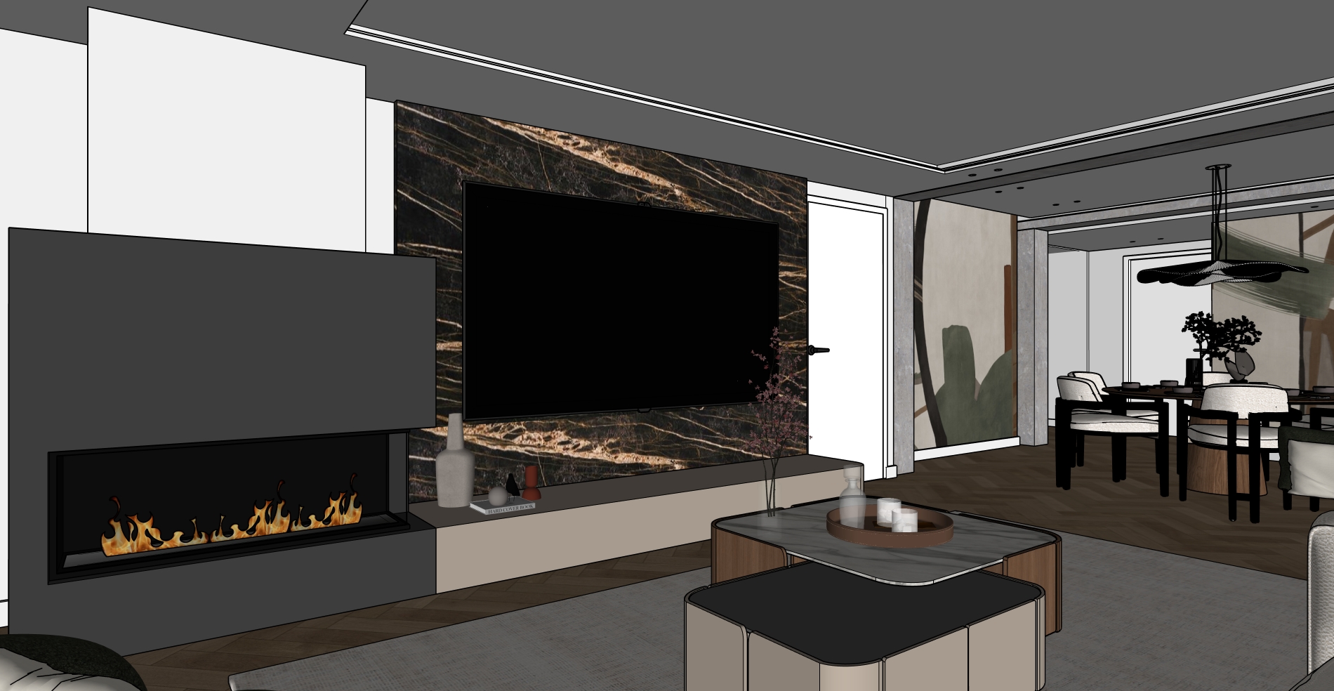 crea una imagen fotorealista de este sketchup manten los papeles pintados