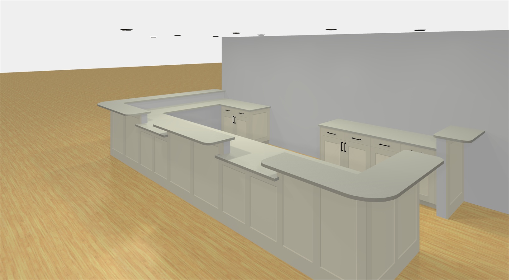 front service counter in a tire shop knotty alder front panels and cabinets quartz countertops