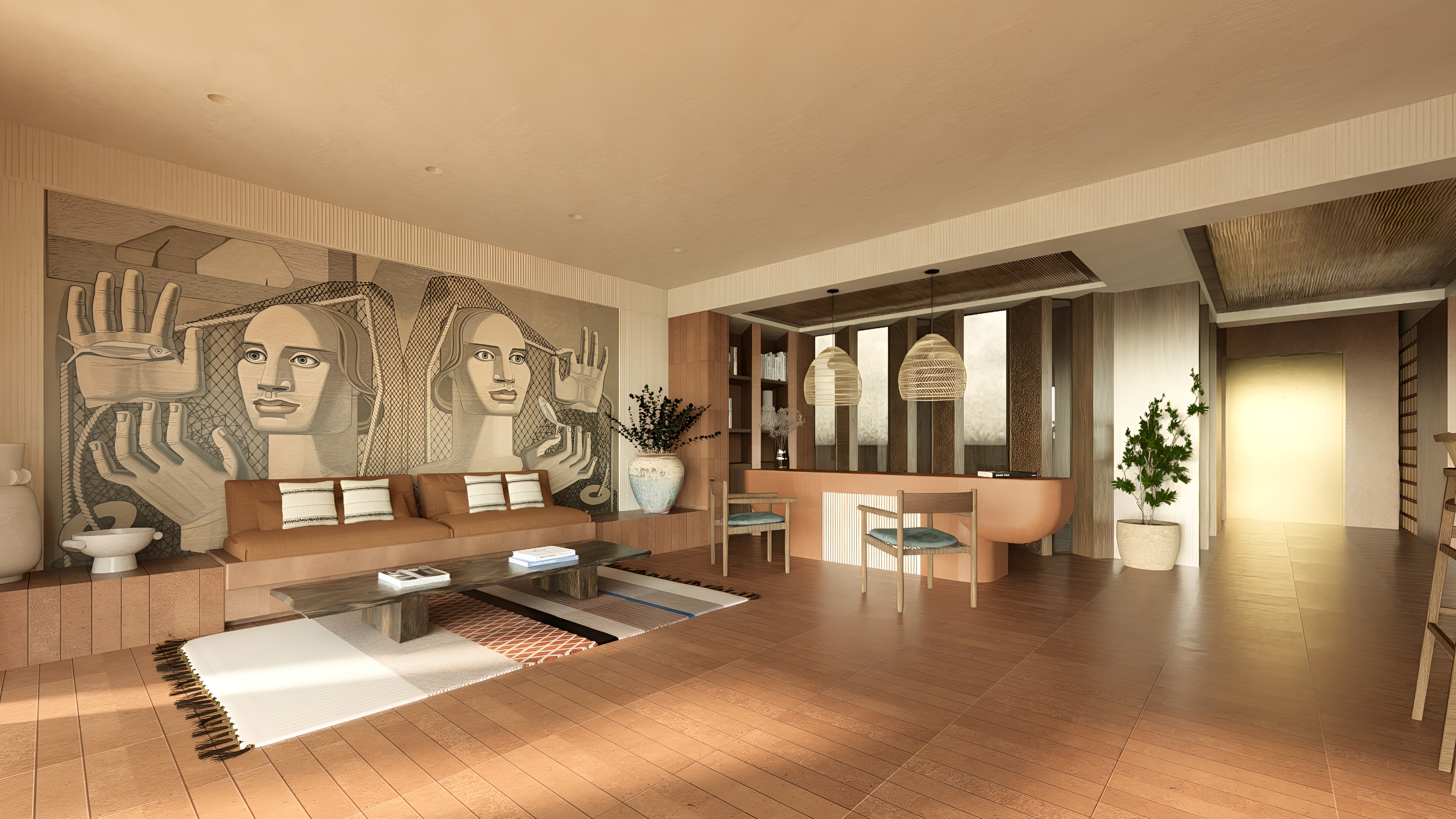 a hyper realistic hotel reception interior