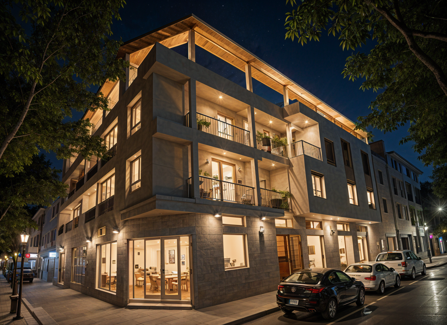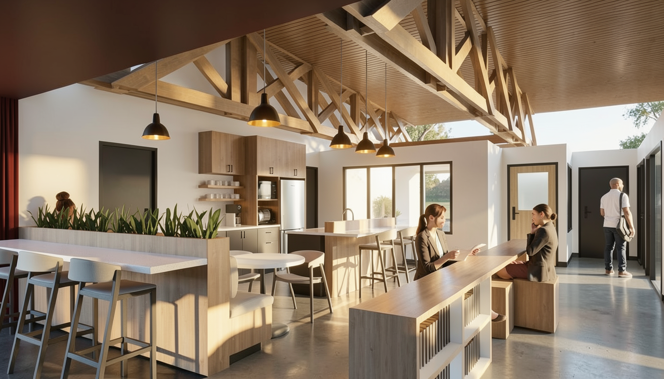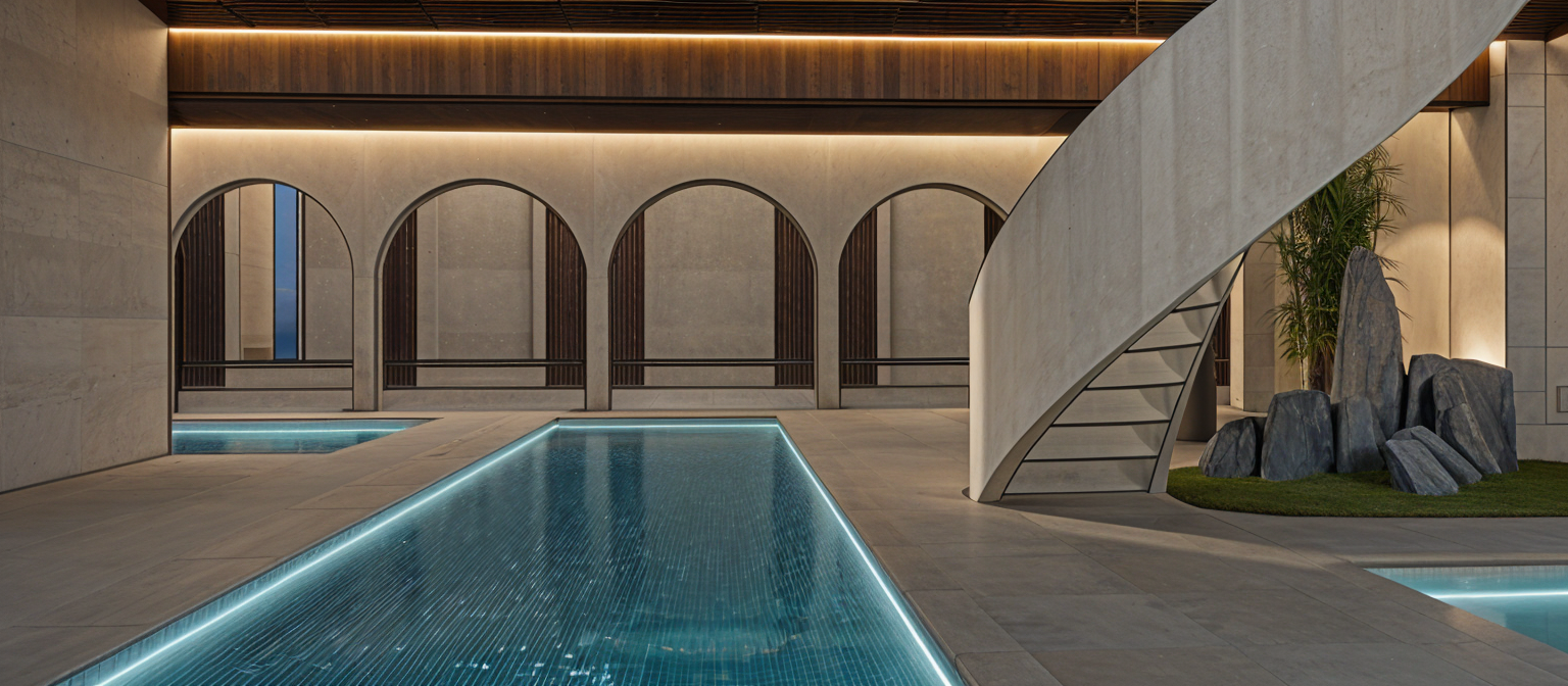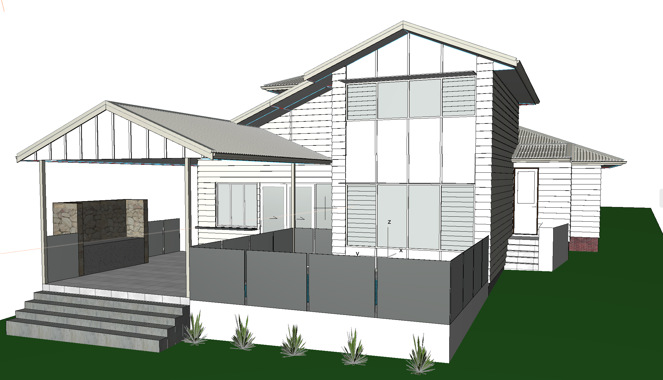 transform this archicad screenshot showing a back entertaining deck and pool area show a driveway on the right hand side of the image