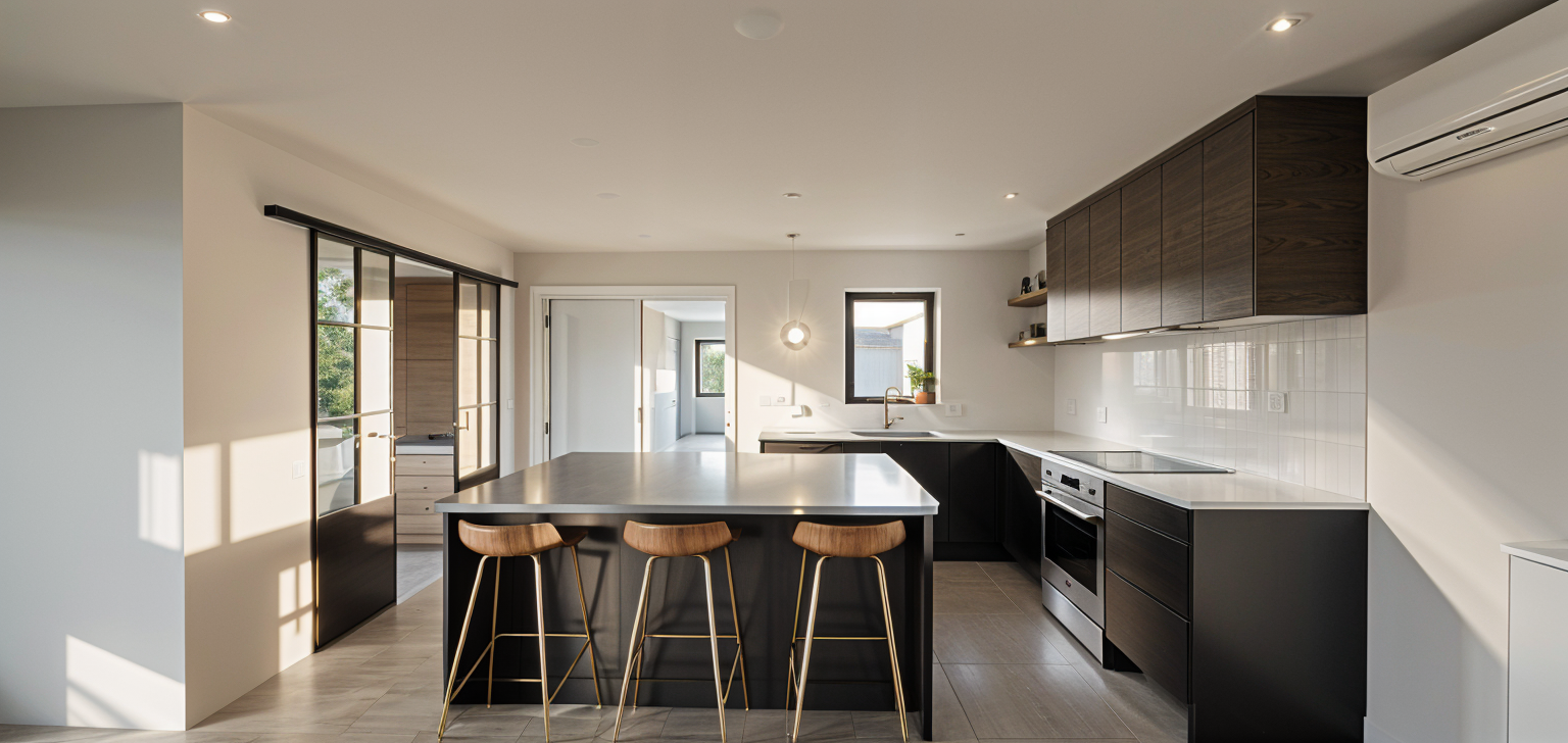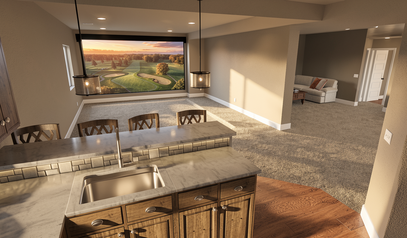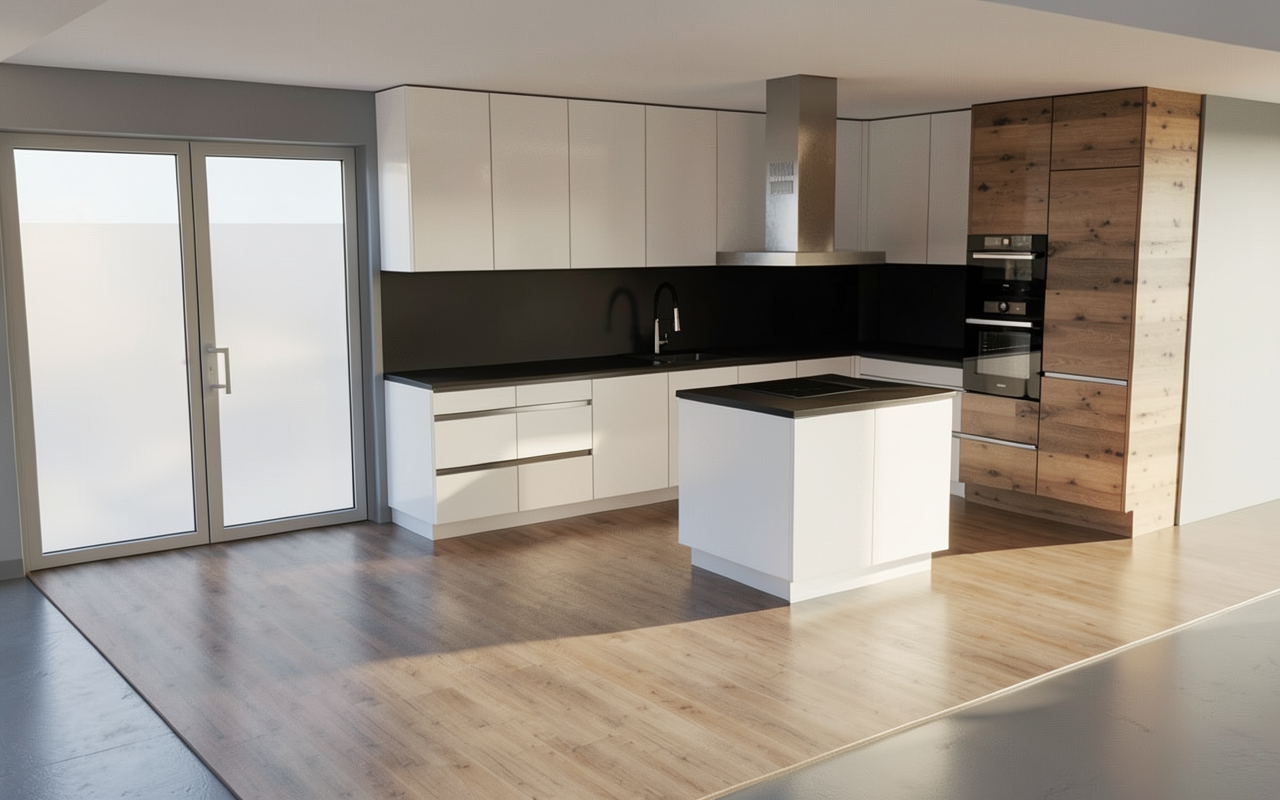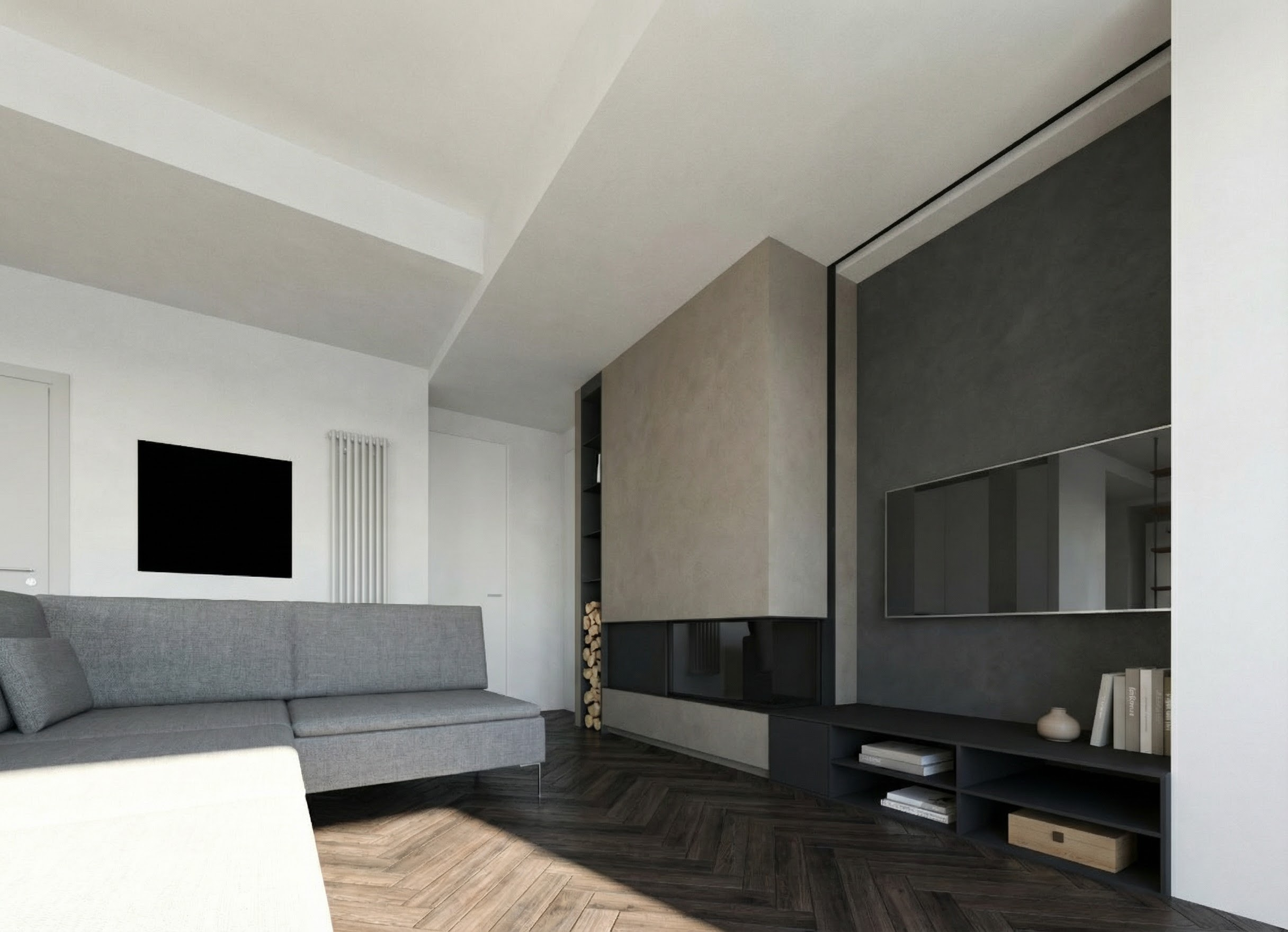 transform this architectural view into a photorealistic interior render preserve 100 geometry volumes perspective and composition do not redesign or reinterpret architecture wall behind tv same material of firework wall