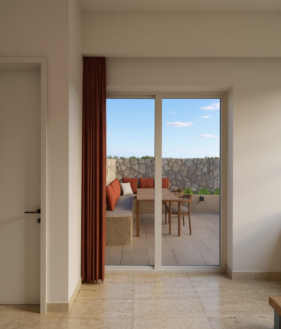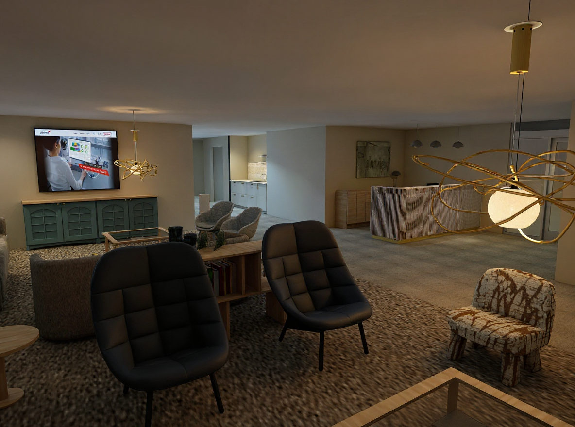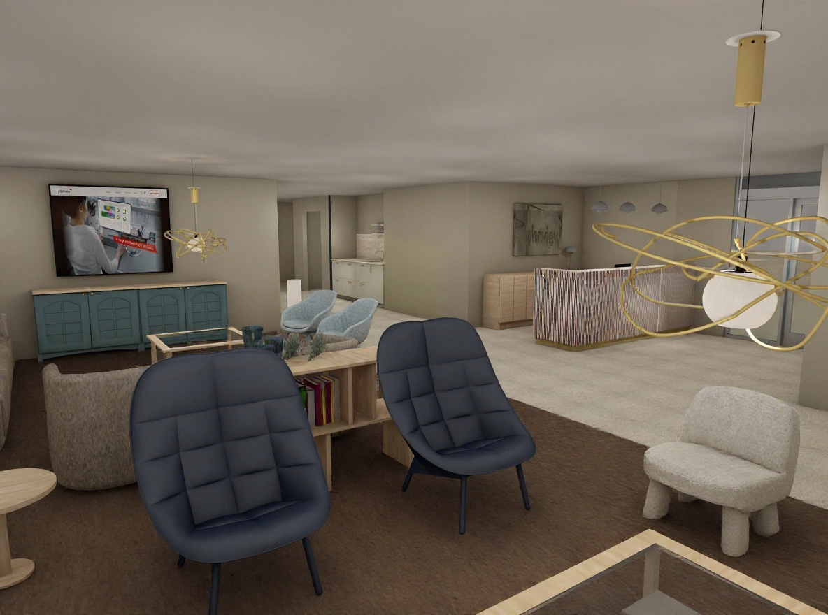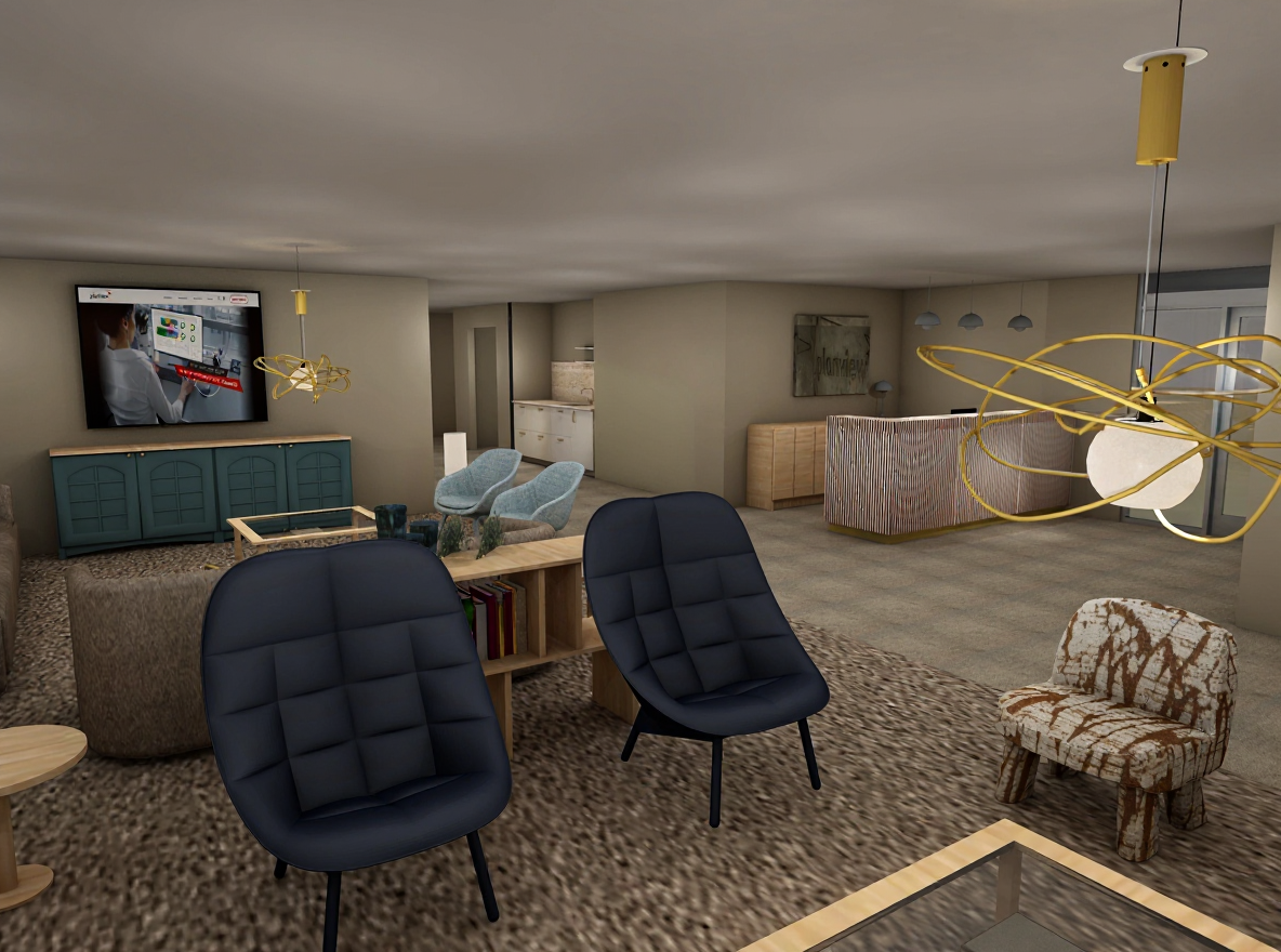 without changing anything else make the current white exposed brick facade a gray exposed brick the section of the stand facade on the left which is currently dark we change to white
