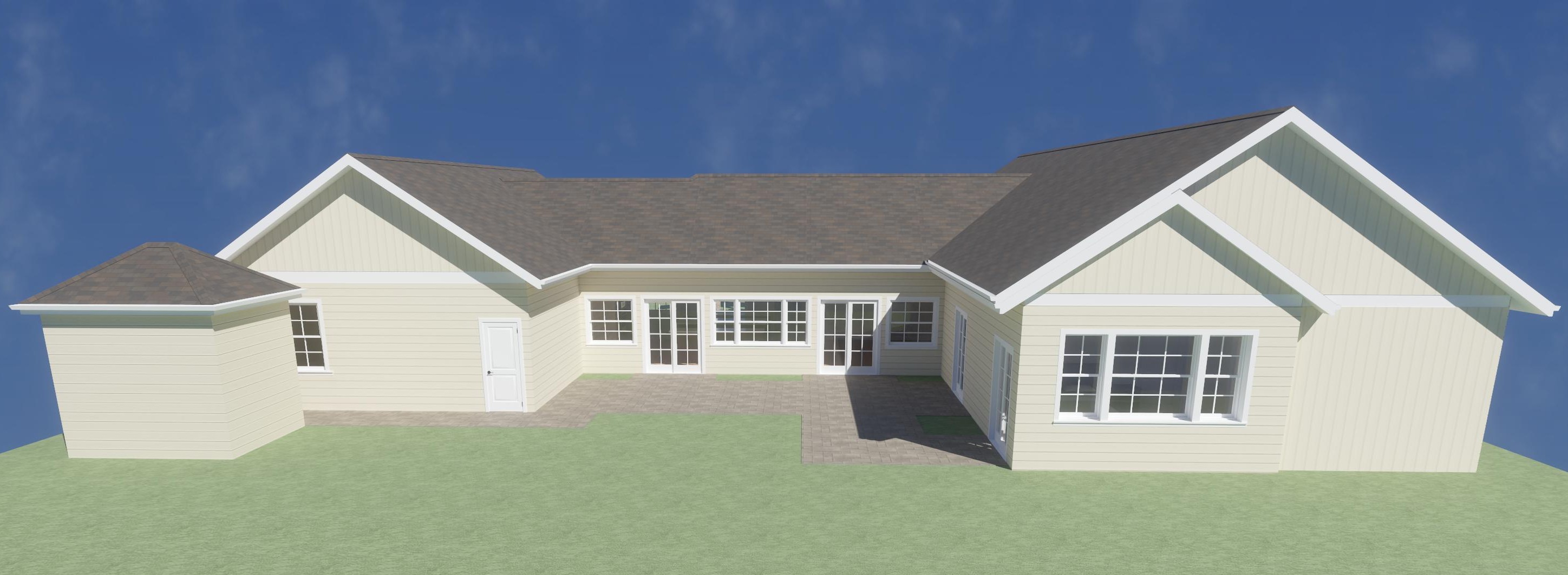 make this exterior look more realistic with landscaping and sconces do not add any windows anywhere or change siding orientation do not change any windows or doors maintain roof color