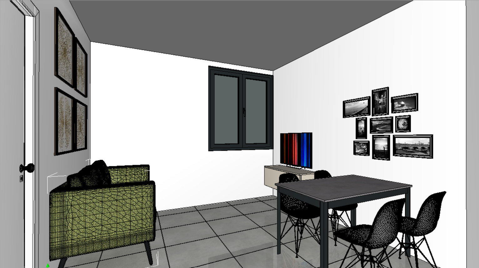 matte gray stone effect flooring put linen curtains on the window warm summer light set the table for 2 people