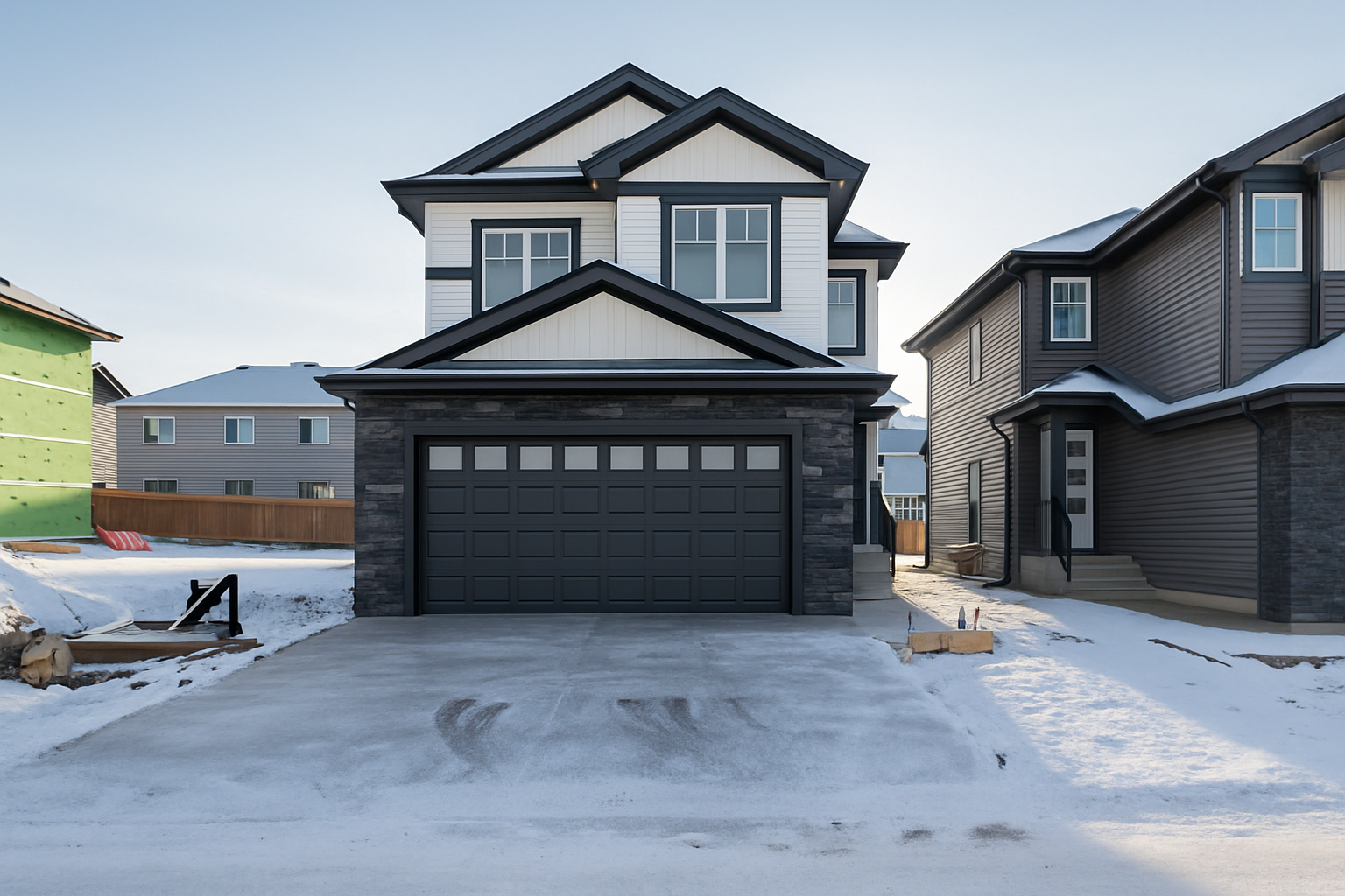 surfmist garage door colour horizontal door panels colorbond roof in dark grey large wall lights vertical wall panels in white pebble driveway