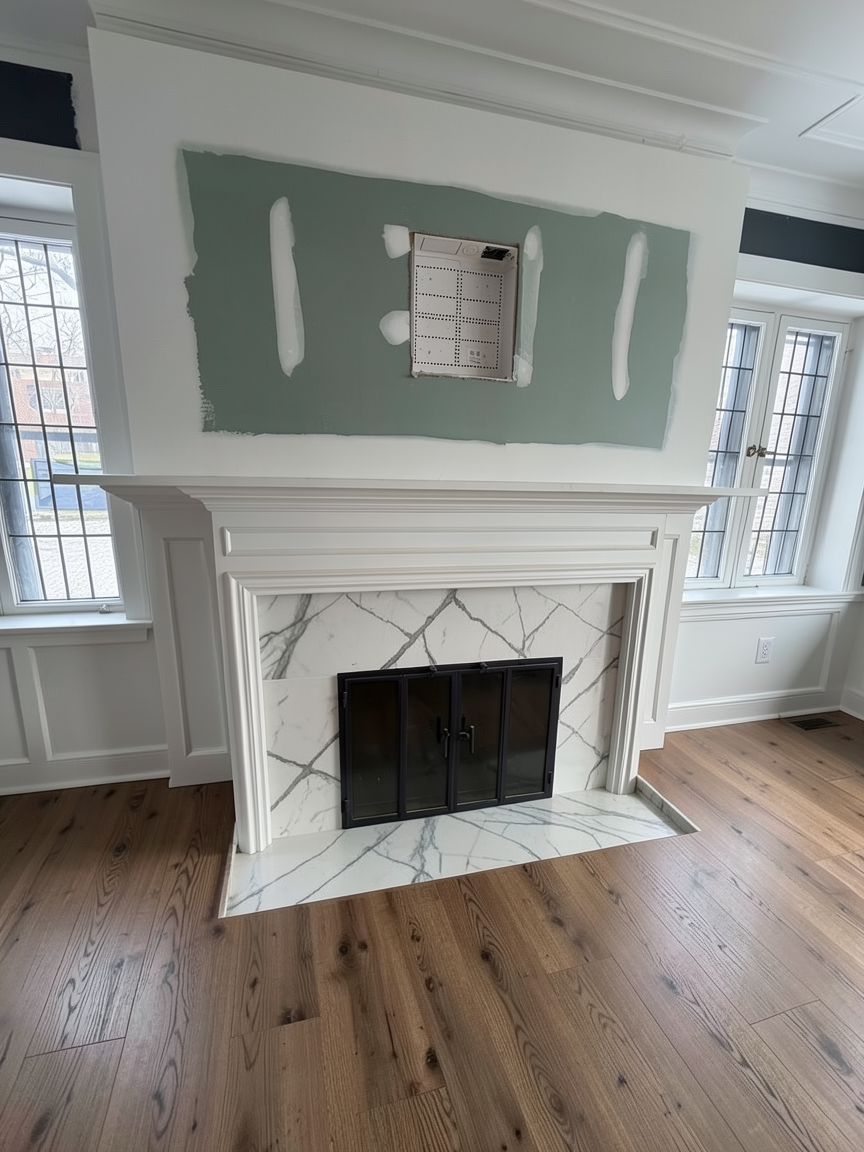 render a modern interior design studio with elegant cabinetry and display shelves use light oak for the cabinetry to convey warmth paired with sleek white shelving units for a clean look the walls should be a subtle cool gray natural light no led cabinet lights