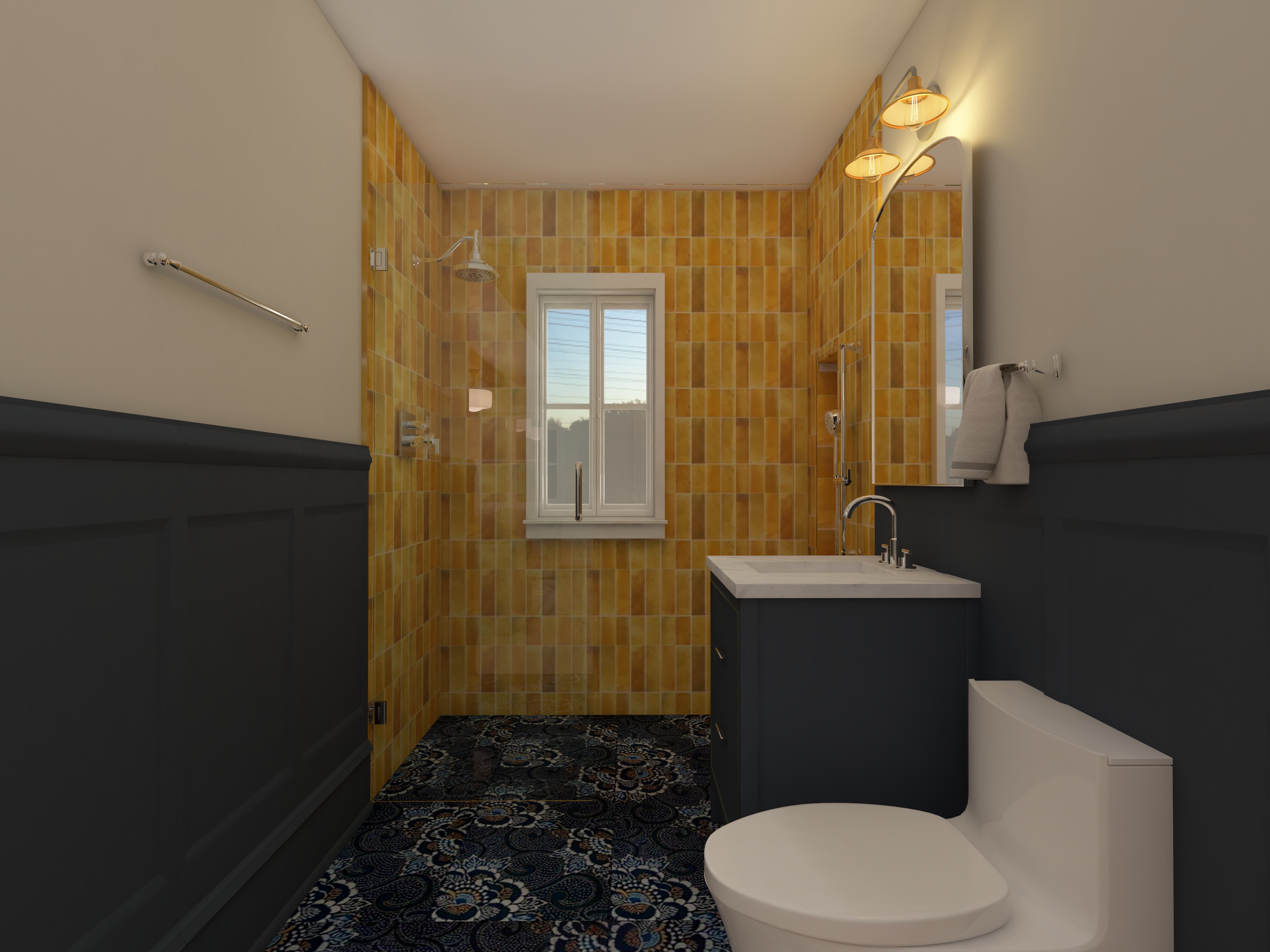 keep everything as is make glass shower walls show up more