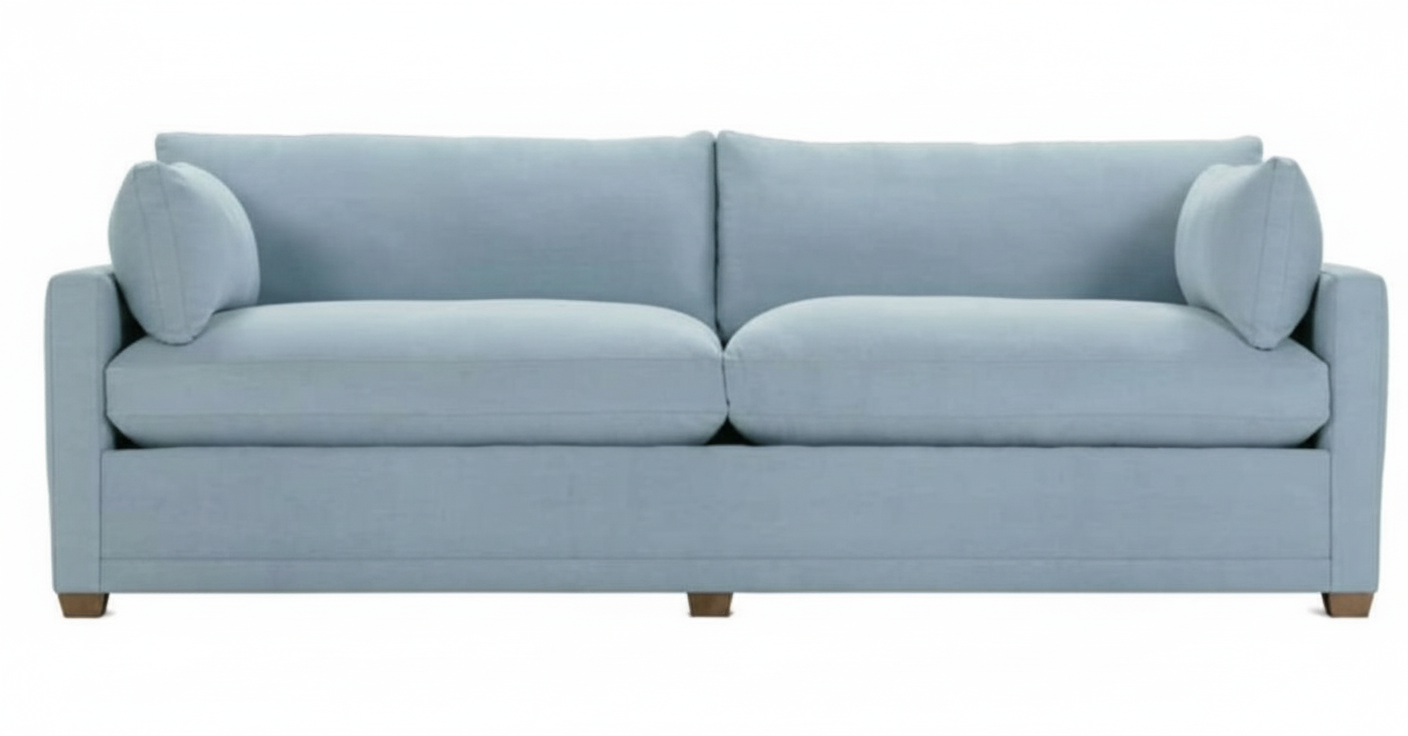 replace the fabric on the sofa with the fabric in the reference image