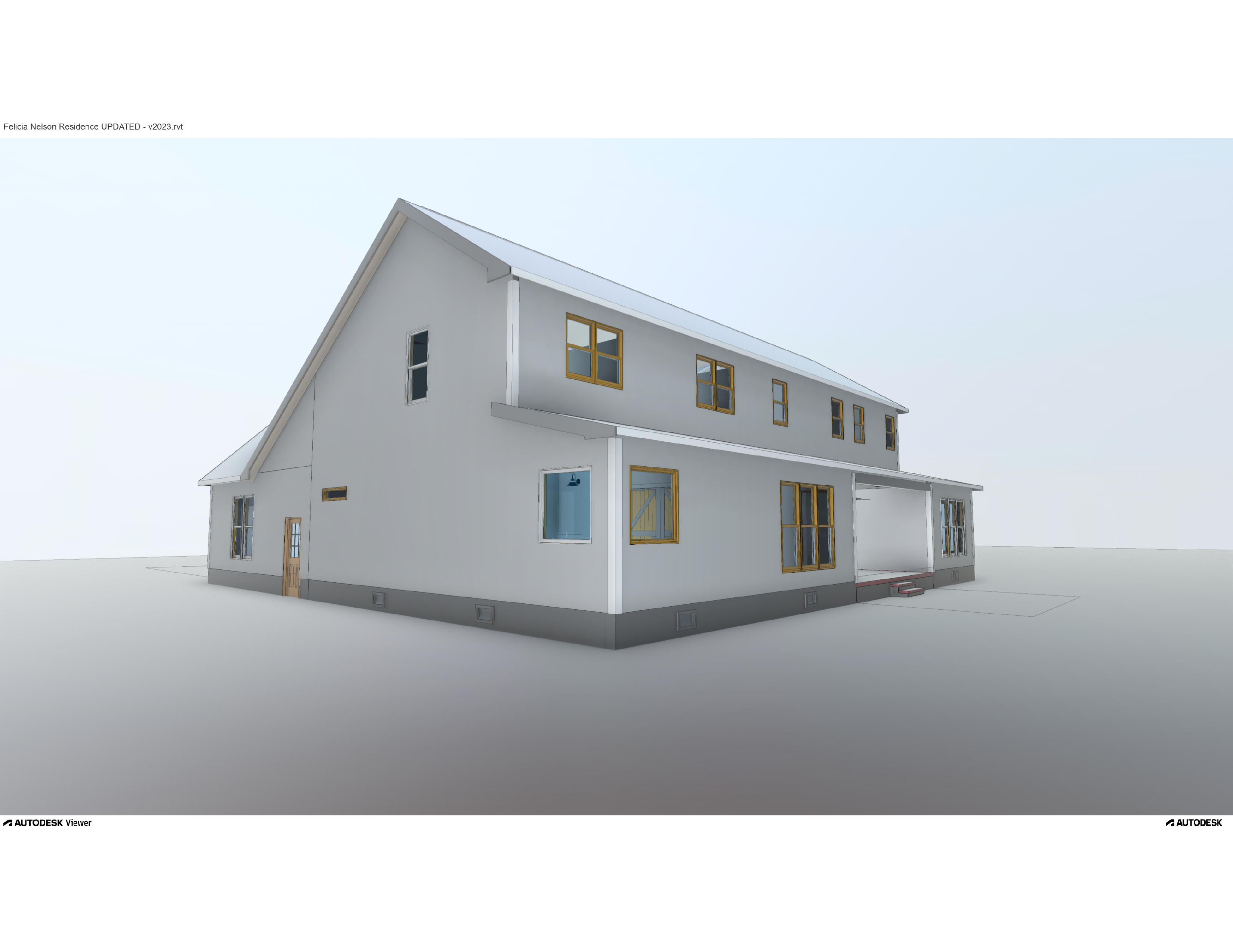 create a realistic cozy suburban house scene with a two story house featuring a light gray exterior with crisp white trim the front door is light red adding an inviting touch all windows are framed with white panels and the garage doors are a soft white with a subtle grid pattern at the windows the roof is a gentle slate gray contrasting harmoniously with the rest of the fa ade surround the house with a tranquil lush green lawn under a crisp clear blue sky casting soft natural shadows to enhance the serene atmosphere