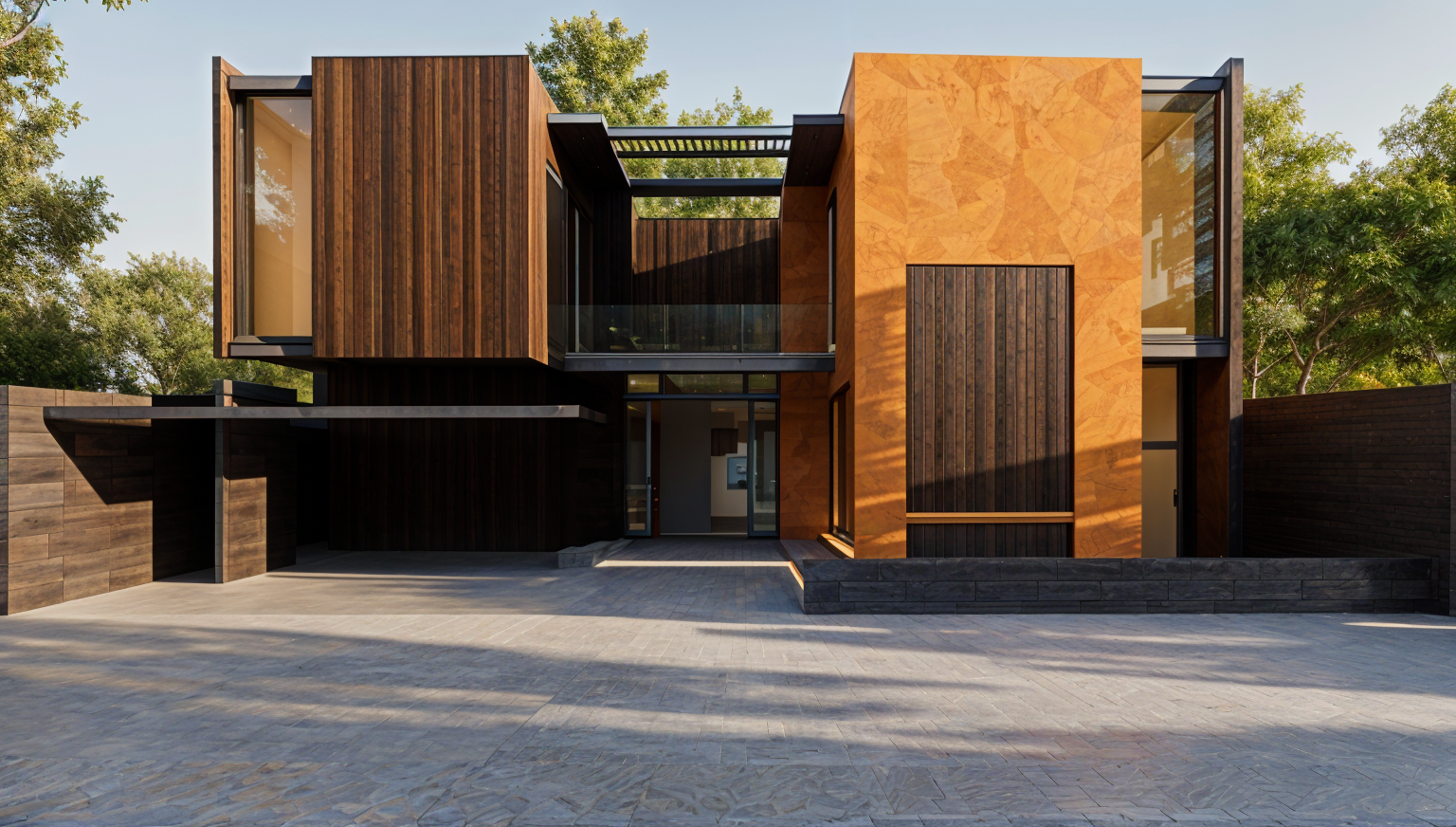 insert this into a room with warm white walls matte finish white oak wide plank flooring and give the brass color doors a zinc patina color