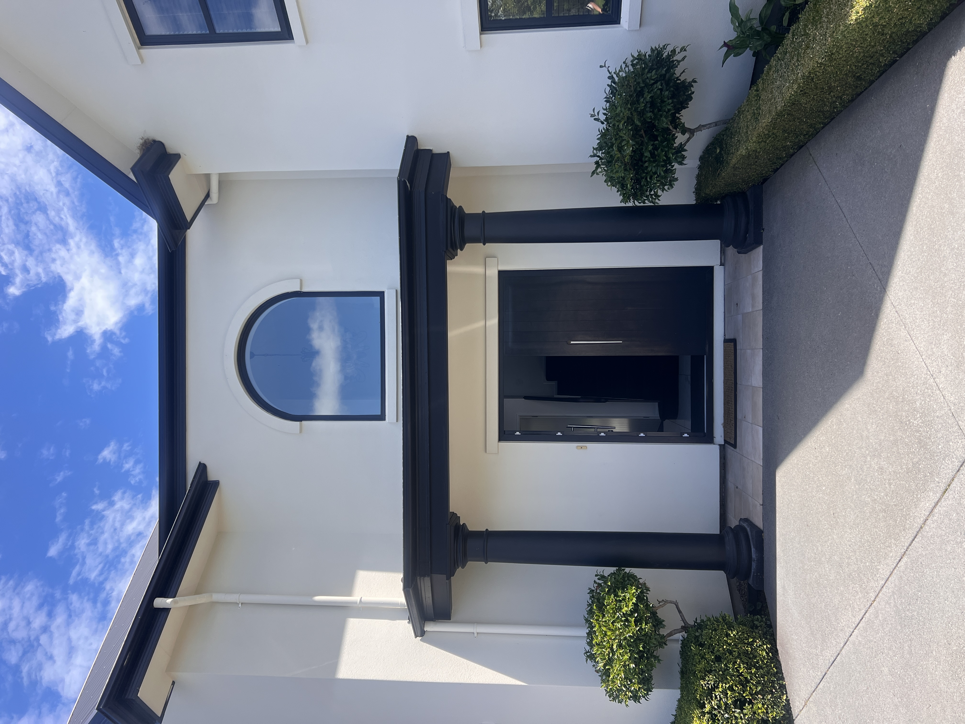 replace arched window with rectangular one the same width as doors below