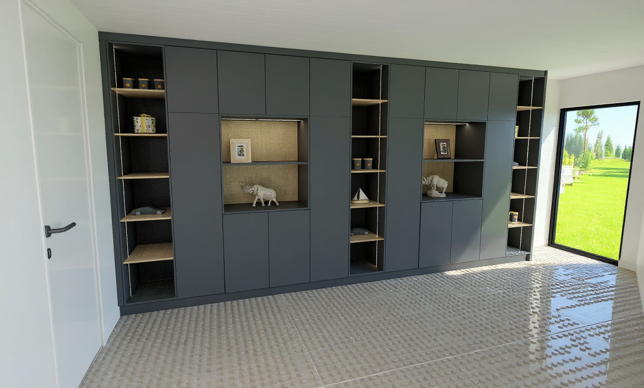 one large round stone planter bed 8 round and 18 high and a 16 deep ledge for seating there should be a tall up lit tree or bush at the center and then lower level greens and flowers closer to the perimeter both stone planters should be mirroring each other on either side of the entrance centered between the two sets of windows the look of the stone planters should feel modern and neither should be directly in front of the entrance