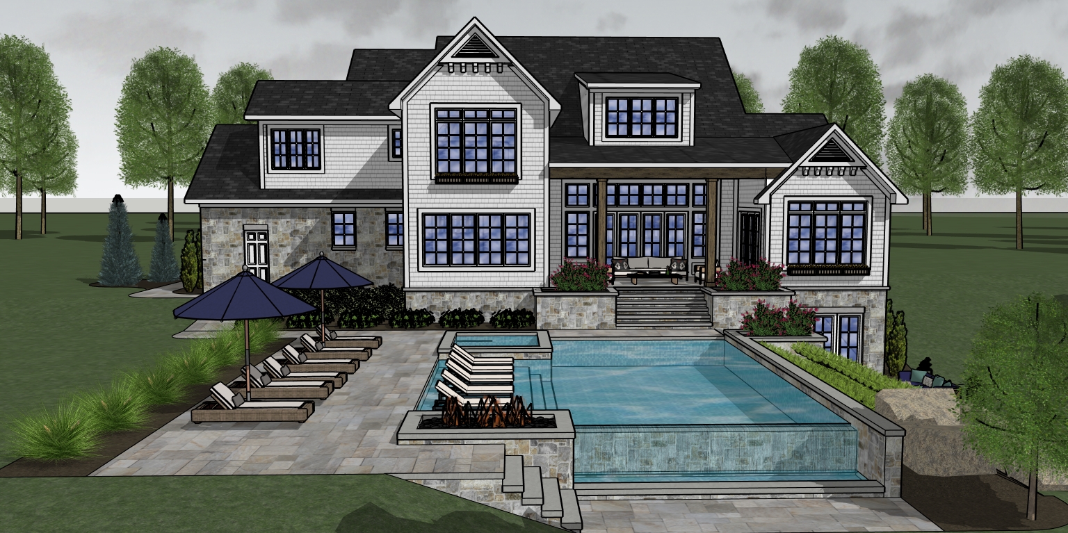 partly cloudy sky some deciduous trees in background add gutters and downsputs white windows