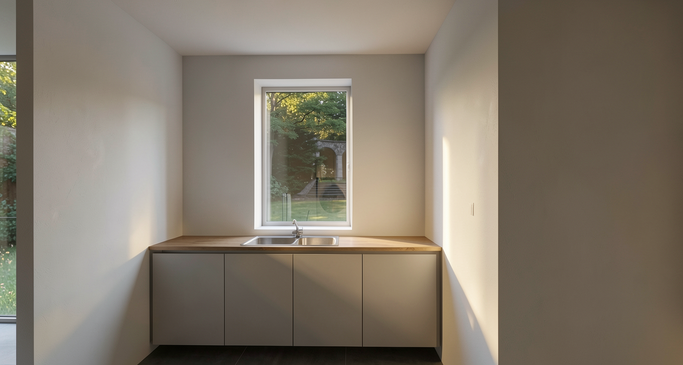 make as photorealistic as possible while keeping textures and house design the same as selection professional landscaping in a lightly wooded scene with good lighting match materials to plan front facing view with lawn in front of house white siding white shakes black windows white garage door black roof