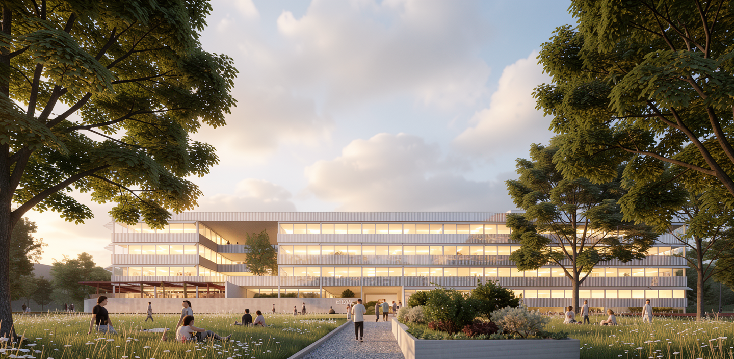 lobby lounge soft white glow from linen glass in top left at the upper level soft daylight on the right gray glass to table top do not modify geometry or add pillows or chairs handrails are very thin dark bronze