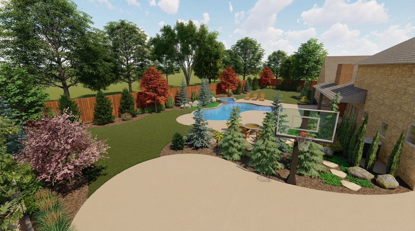 the white walls are actually red brick dont add expansion joints on the concrete the concrete is a light tan finish add a couple trees behind the fence and property remove the shadowing the walls are made of a tan stone make it look more photorealistic